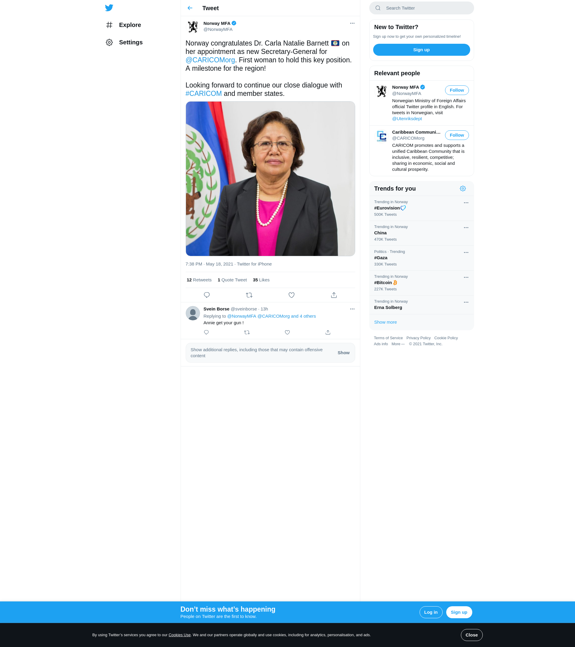 Norway congratulates Dr. Carla Natalie Barnett 🇧🇿 on her appointment as new Secretary-General for @CARICOMorg. First woman to hold this key position. A milestone for the region!