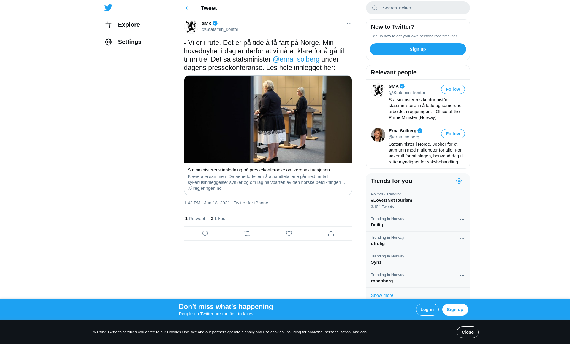 Kjære alle sammen. Dataene forteller nå at smittetallene går ned, antall sykehusinnleggelser synker og om lag halvparten av den norske befolkningen over 18 år har fått minst én vaksinedose.