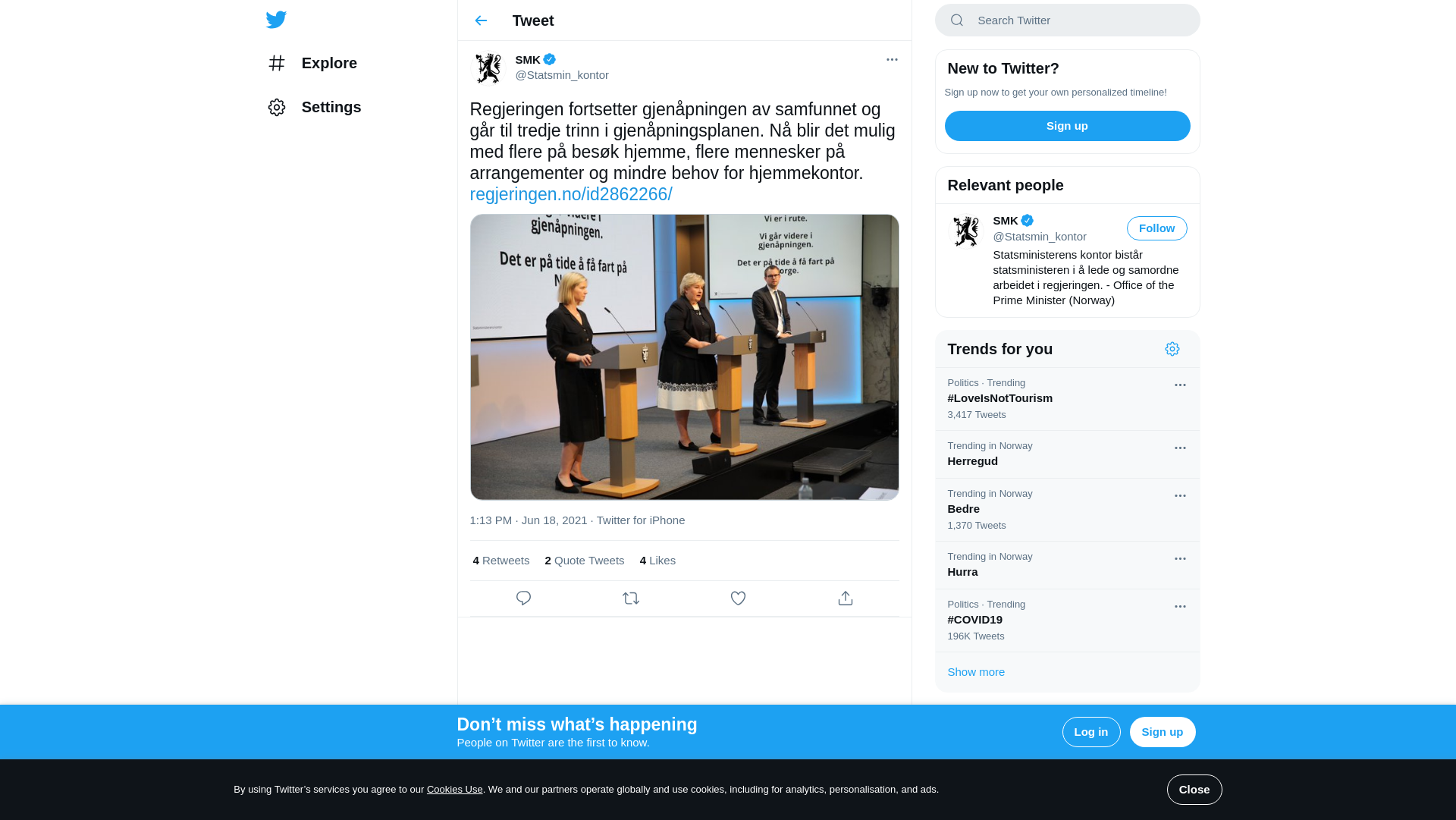 Regjeringen fortsetter gjenåpningen av samfunnet og går til tredje trinn i gjenåpningsplanen. Nå blir det mulig med flere på besøk hjemme, flere mennesker på arrangementer og mindre behov for hjemmekontor. Barn og unge kan delta på idretts- og kulturar...