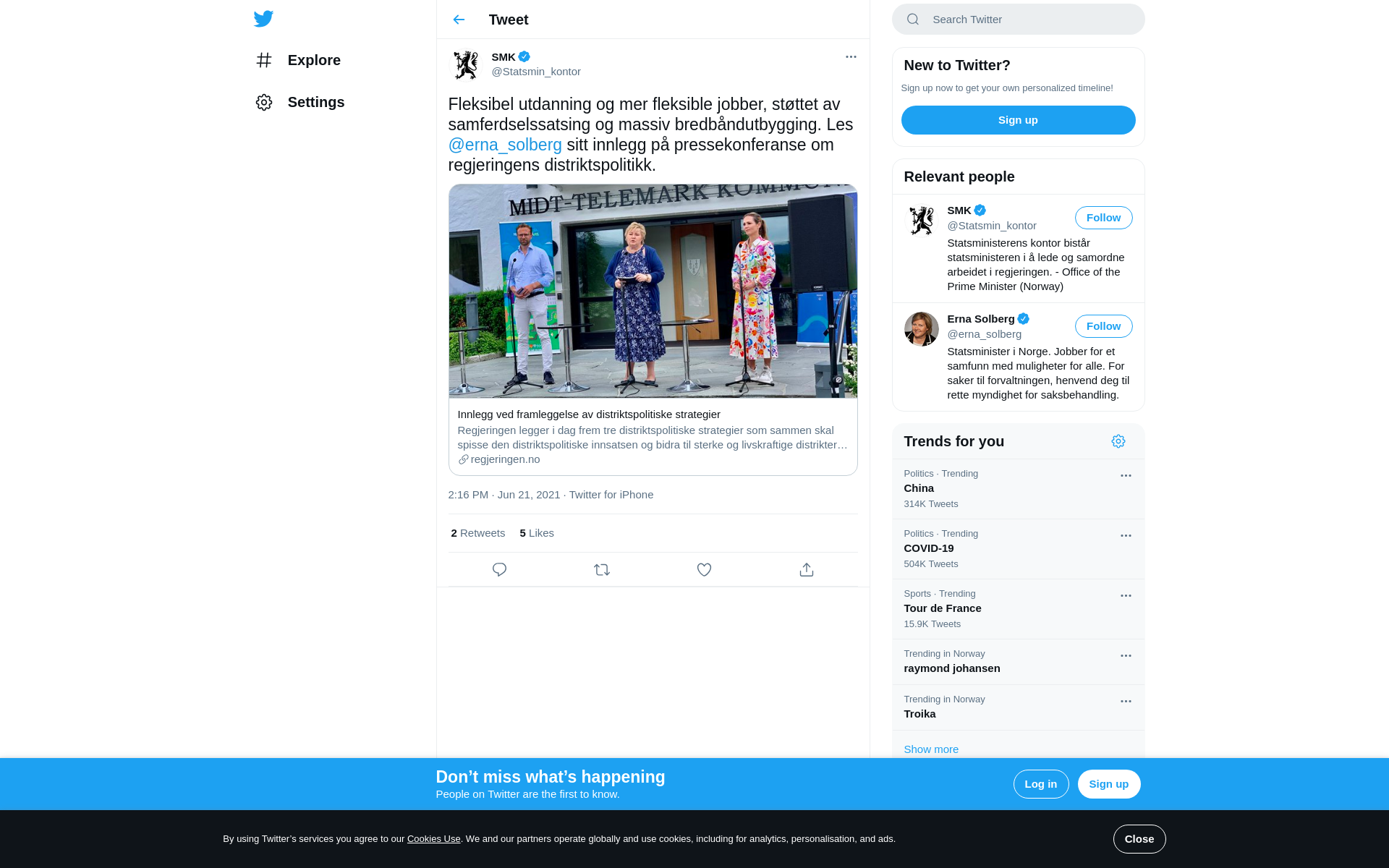 Statsministerens innlegg ved framleggelse av tre distriktspolitiske strategier sammen med distrikts- og digitaliseringsminister Linda Hofstad Helleland og kommunal- og moderniseringsminister Nikolai Astrup i Bø i Vestfold og Telemark 21. juni.
