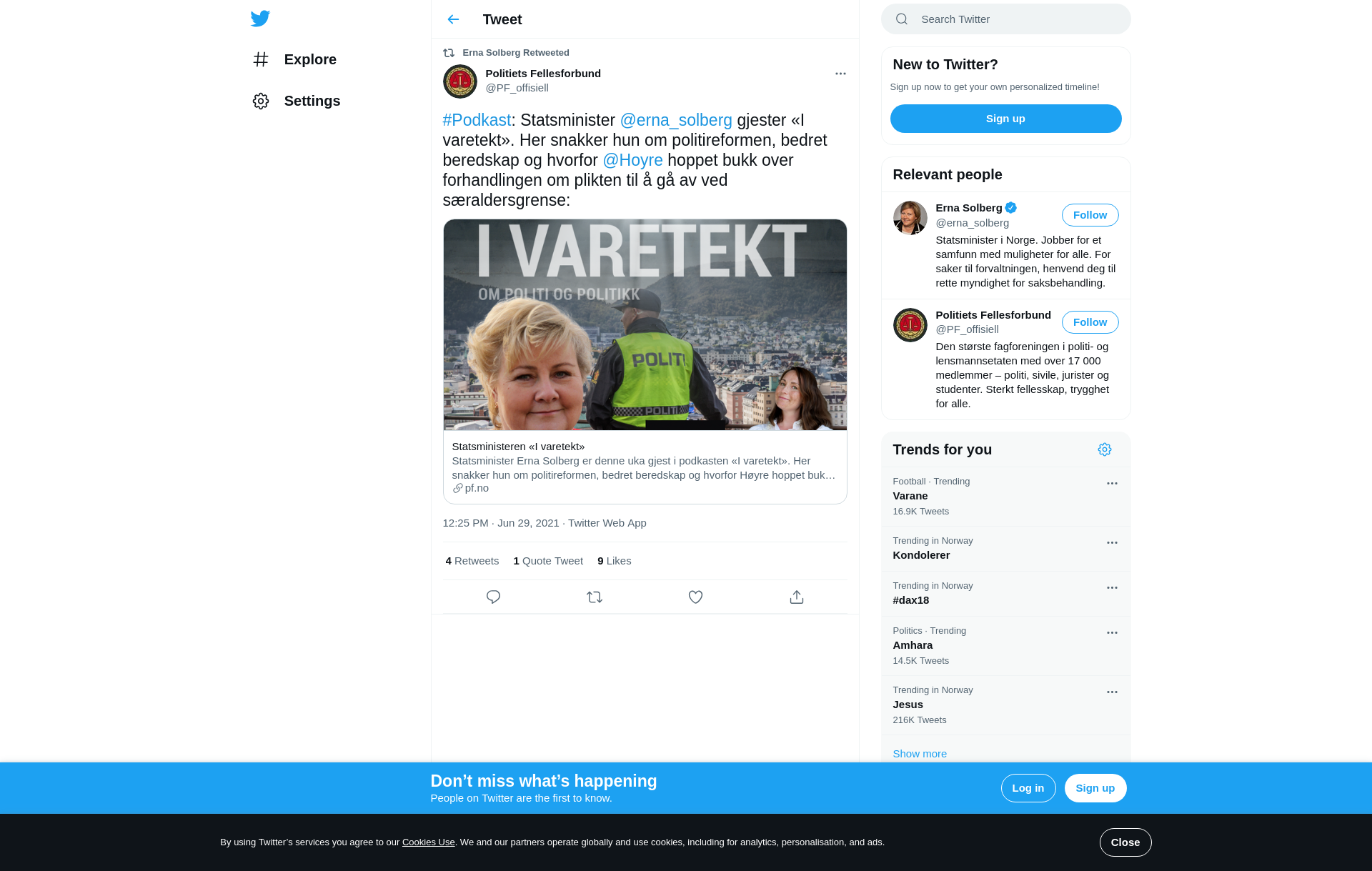 RT @PF_offisiell: #Podkast: Statsminister @erna_solberg gjester «I varetekt». Her snakker hun om politireformen, bedret beredskap og hvorfor @Hoyre hoppet bukk over forhandlingen om plikten til å gå av ved særaldersgrense: https://t.co/iH6c0VoRFm