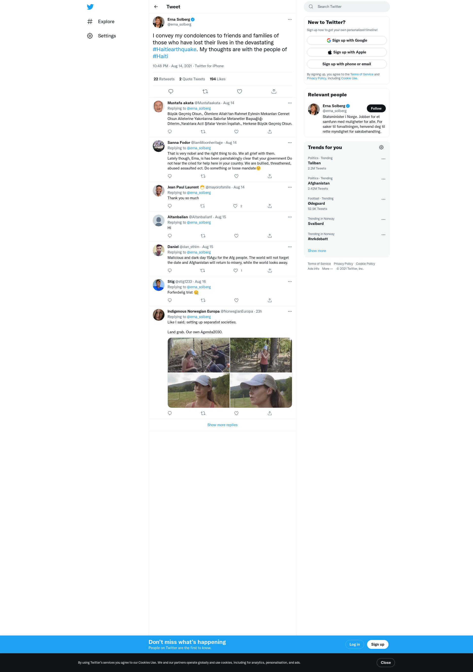 I convey my condolences to friends and families of those who have lost their lives in the devastating #Haitiearthquake. My thoughts are with the people of #Haiti