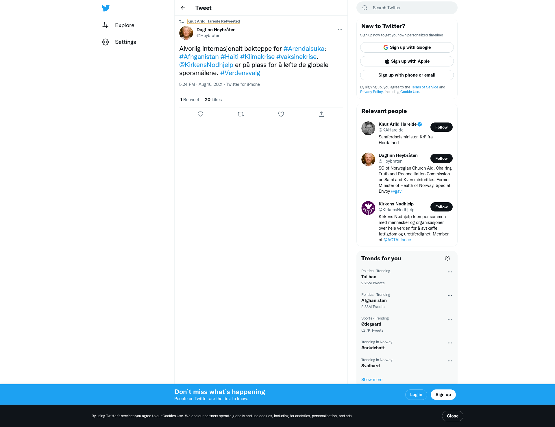 RT @Hoybraten: Alvorlig internasjonalt bakteppe for #Arendalsuka: #Afhganistan #Haiti #Klimakrise #vaksinekrise. @KirkensNodhjelp er på plass for å løfte de globale spørsmålene. #Verdensvalg