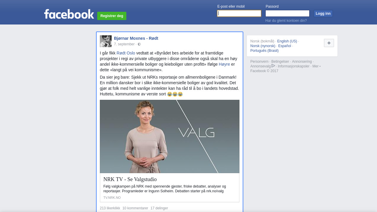 Da sier jeg bare: Sjekk ut NRKs reportasje om allmennboligene i Danmark! En million dansker bor i slike ikke-kommersielle boliger av god kvalitet. Det gjør at folk med helt vanlige inntekter kan ha råd til å bo i landets hovedstad. Huttetu, kommunisme av verste sort 😂😂😂