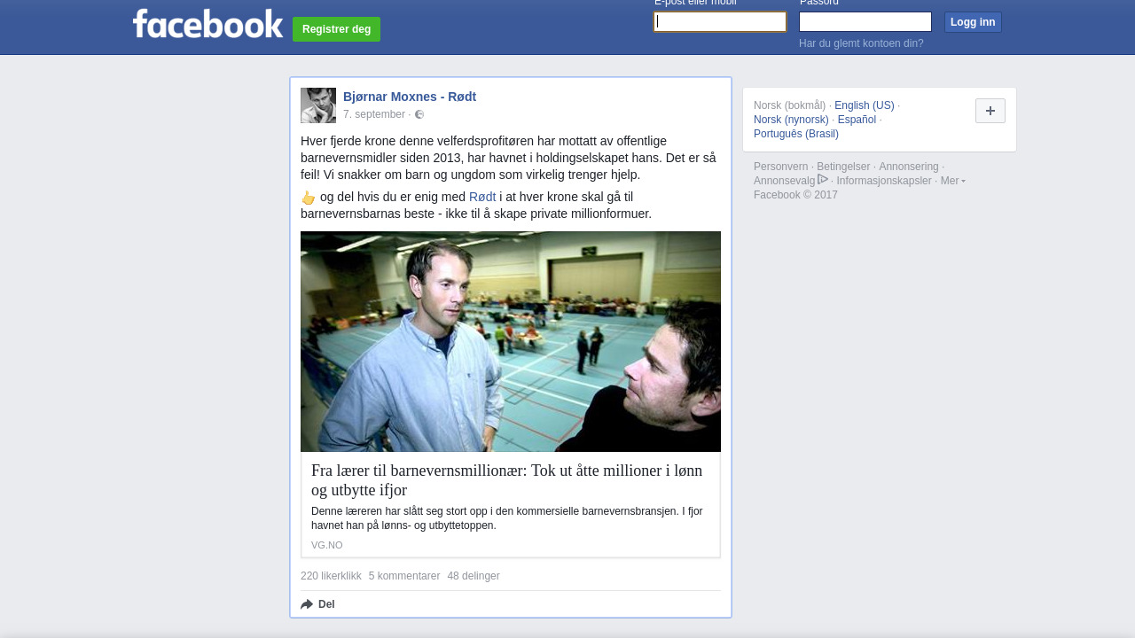 👍 og del hvis du er enig med Rødt i at hver krone skal gå til barnevernsbarnas beste - ikke til å skape private millionformuer.