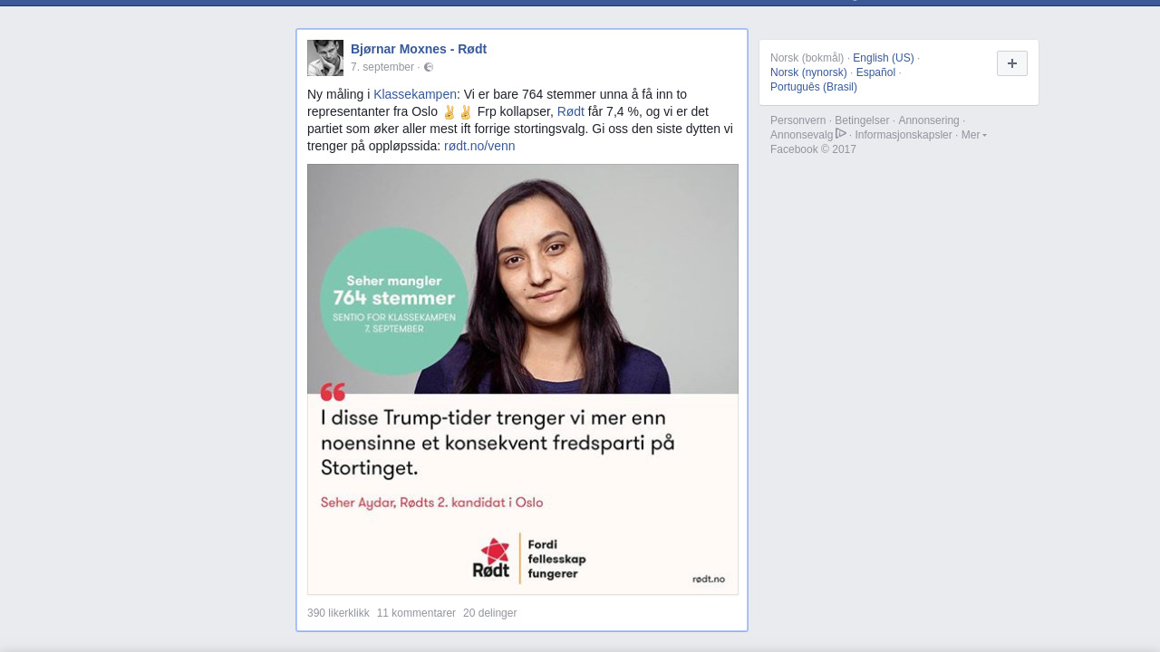 Ny måling i Klassekampen: Vi er bare 764 stemmer unna å få inn to representanter fra Oslo ✌️✌️ Frp kollapser, Rødt får 7,4 %, og vi er det partiet som øker aller mest ift forrige stortingsvalg. Gi oss den siste dytten vi trenger på oppløpssida: rødt.no/venn