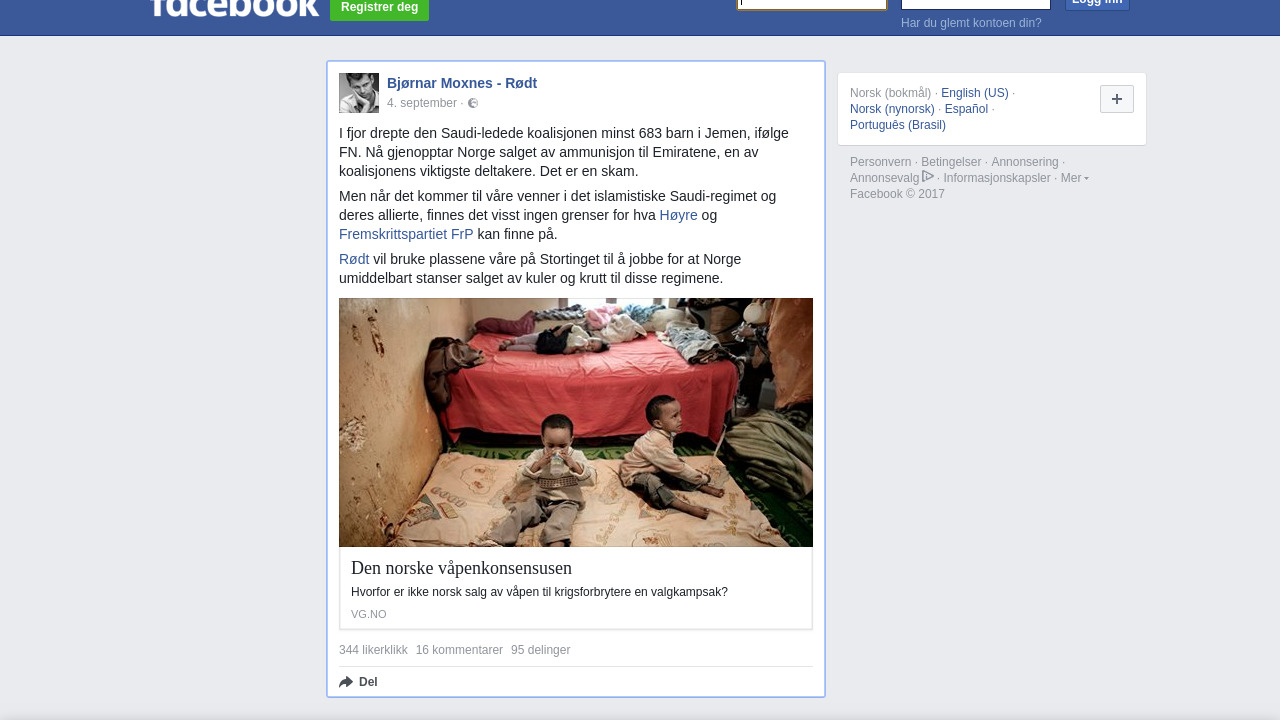 I fjor drepte den Saudi-ledede koalisjonen minst 683 barn i Jemen, ifølge FN. Nå gjenopptar Norge salget av ammunisjon til Emiratene, en av koalisjonens viktigste deltakere. Det er en skam.