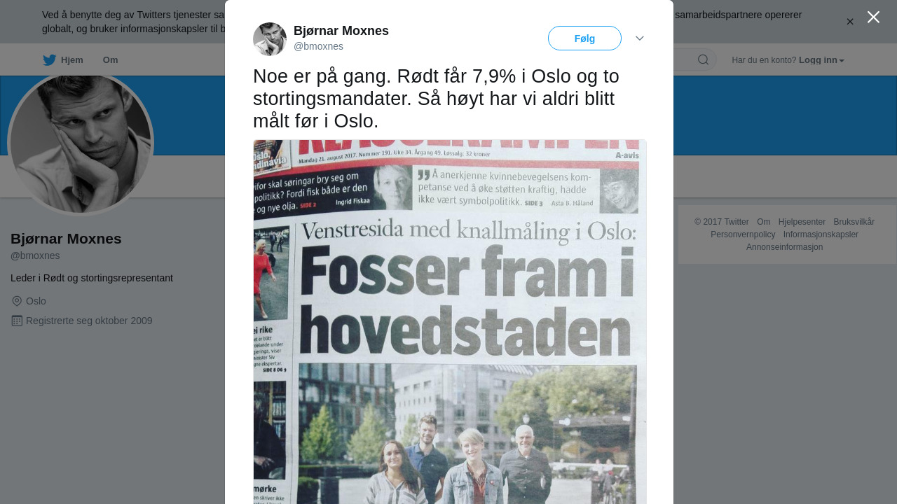 Noe er på gang. Rødt får 7,9% i Oslo og to stortingsmandater. Så høyt har vi aldri blitt målt før i Oslo. https://t.co/fzZwLSYeJ3