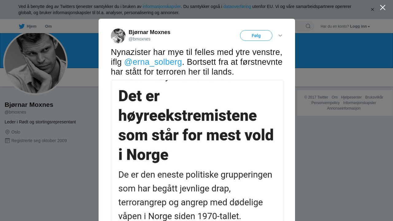 Nynazister har mye til felles med ytre venstre, iflg @erna_solberg. Bortsett fra at førstnevnte har stått for terro… https://t.co/udDIOPhkeA