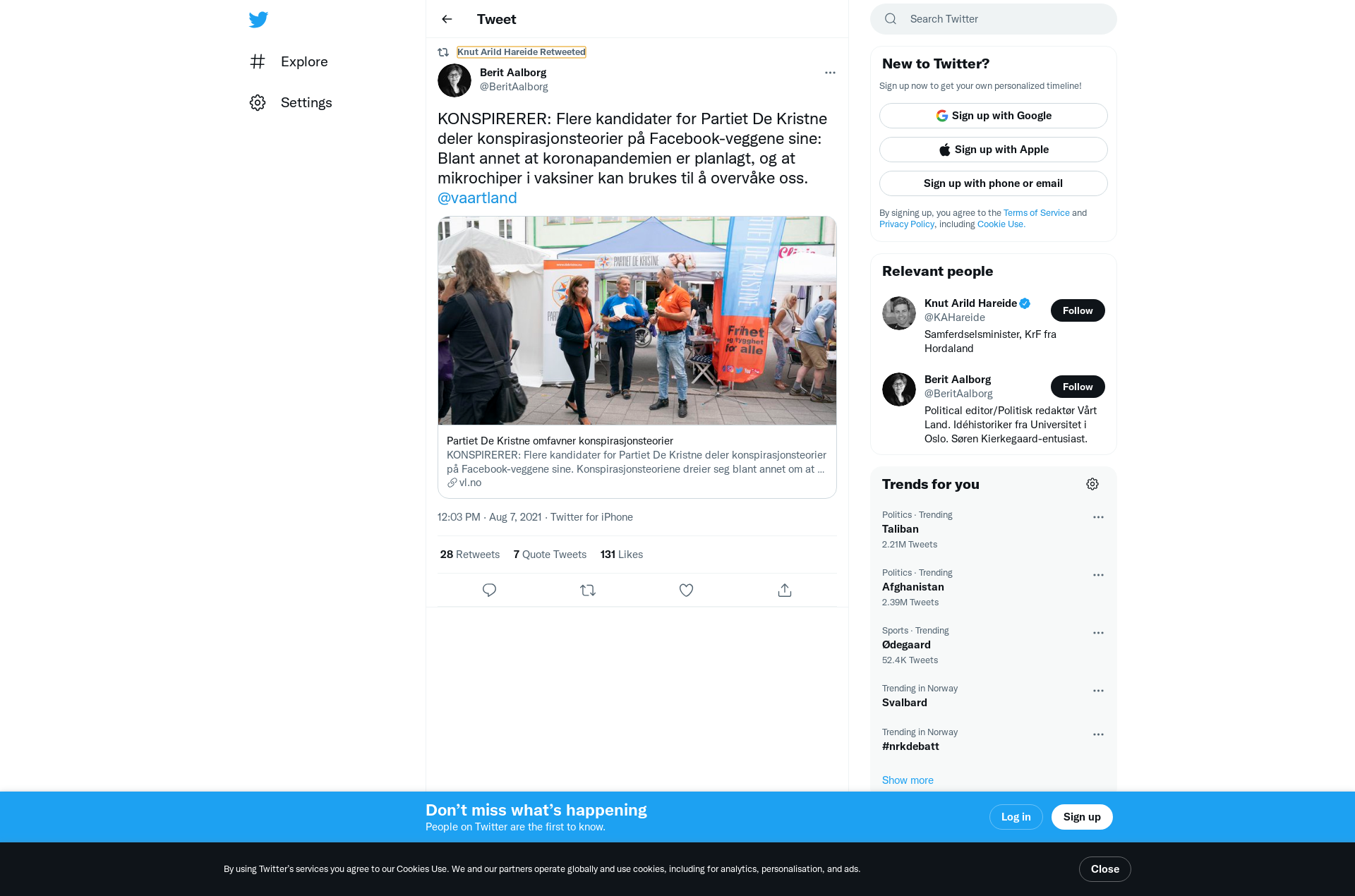RT @BeritAalborg: KONSPIRERER: Flere kandidater for Partiet De Kristne deler konspirasjonsteorier på Facebook-veggene sine: Blant annet at koronapandemien er planlagt, og at mikrochiper i vaksiner kan brukes til å overvåke oss. @vaartland