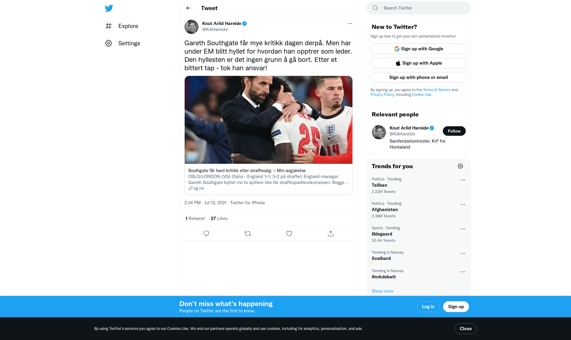 Gareth Southgate får mye kritikk dagen derpå. Men har under EM blitt hyllet for hvordan han opptrer som leder. Den hyllesten er det ingen grunn å gå bort. Etter et bittert tap - tok han ansvar!
