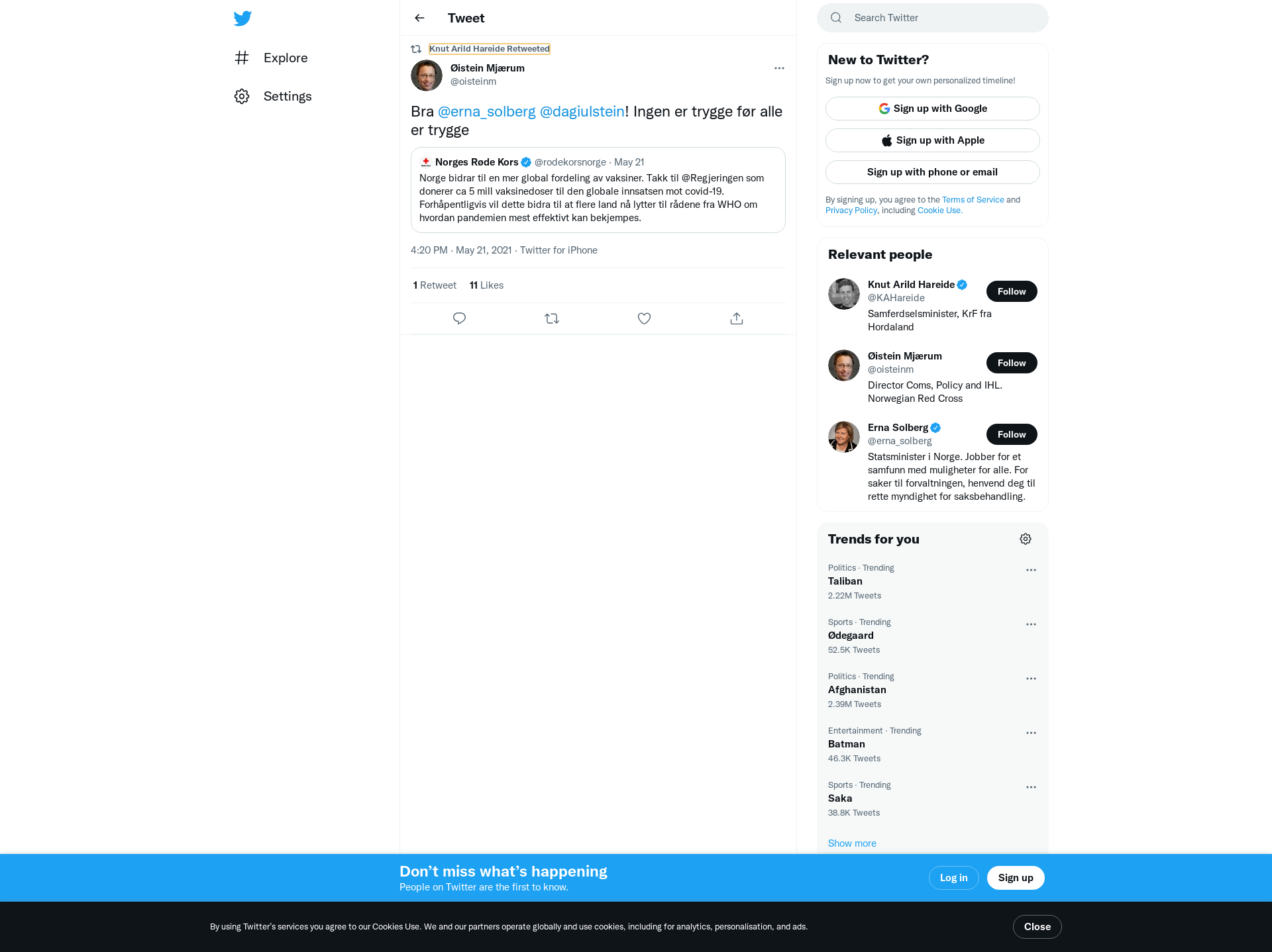 RT @oisteinm: Bra @erna_solberg @dagiulstein! Ingen er trygge før alle er trygge