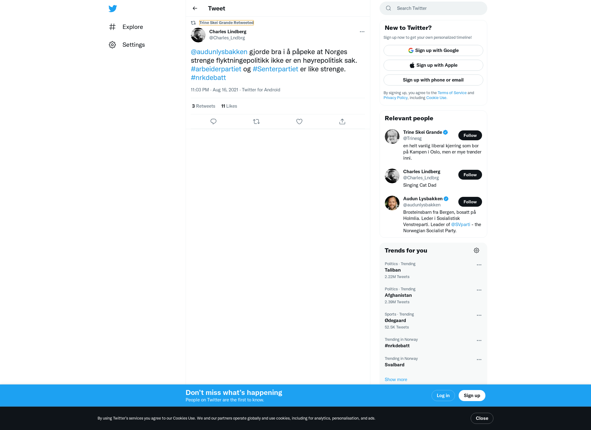 RT @Charles_Lndbrg: @audunlysbakken gjorde bra i å påpeke at Norges strenge flyktningepolitikk ikke er en høyrepolitisk sak. #arbeiderpartiet og #Senterpartiet er like strenge. #nrkdebatt
