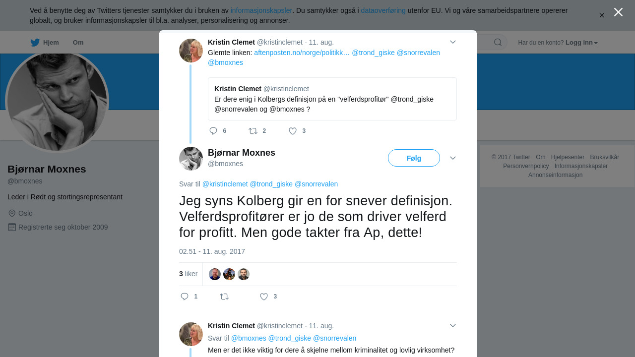 @kristinclemet @trond_giske @snorrevalen Jeg syns Kolberg gir en for snever definisjon. Velferdsprofitører er jo de… https://t.co/ZzG4yVxdkR