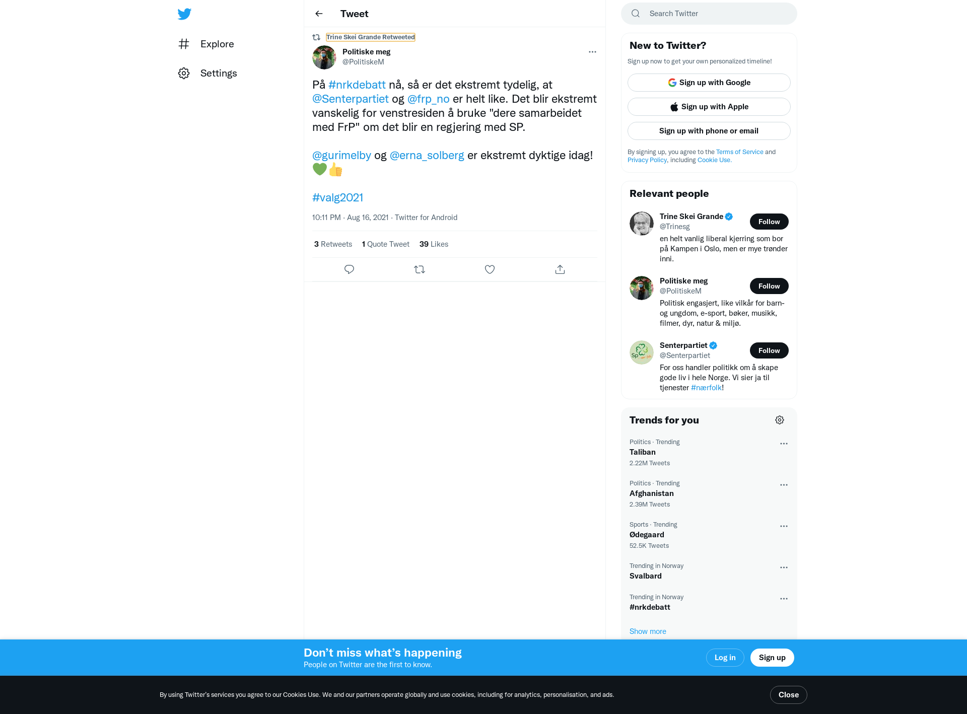 RT @PolitiskeM: På #nrkdebatt nå, så er det ekstremt tydelig, at @Senterpartiet og @frp_no er helt like. Det blir ekstremt vanskelig for venstresiden å bruke "dere samarbeidet med FrP" om det blir en regjering med SP.