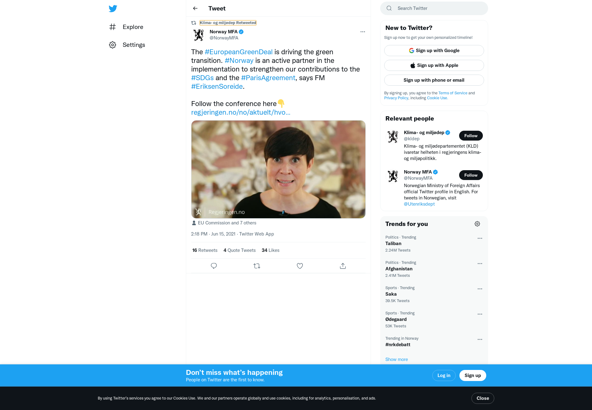 RT @NorwayMFA: The #EuropeanGreenDeal is driving the green transition. #Norway is an active partner in the implementation to strengthen our contributions to the #SDGs and the #ParisAgreement, says FM #EriksenSoreide.