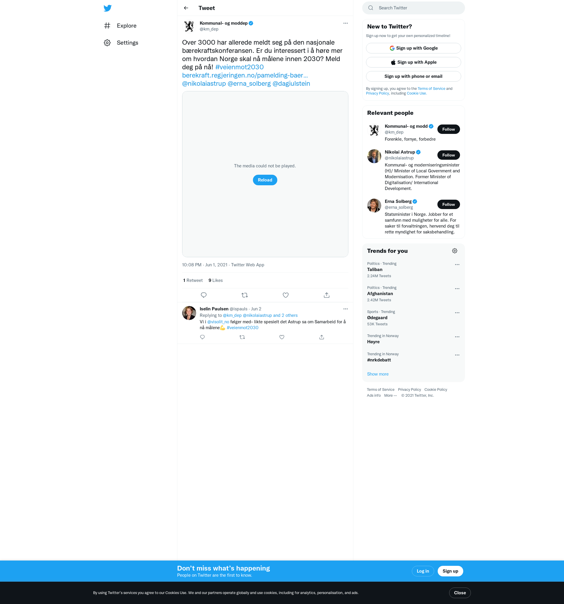 Over 3000 har allerede meldt seg på den nasjonale bærekraftskonferansen. Er du interessert i å høre mer om hvordan Norge skal nå målene innen 2030? Meld deg på nå! #veienmot2030 https://t.co/FB2VYuhyfL @nikolaiastrup @erna_solberg @dagiulstein https://t.co/6FsdWe03r2