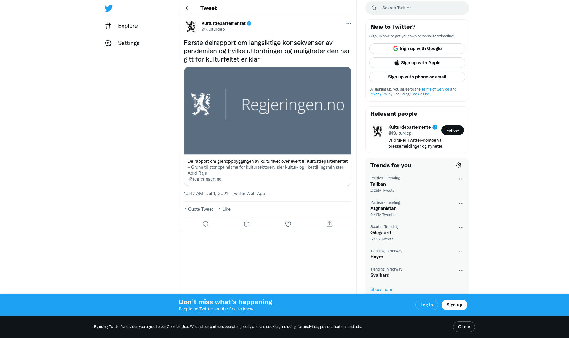 Første delrapport om langsiktige konsekvenser av pandemien og hvilke utfordringer og muligheter den har gitt for kulturfeltet er klar https://t.co/NxiqH4dlFX