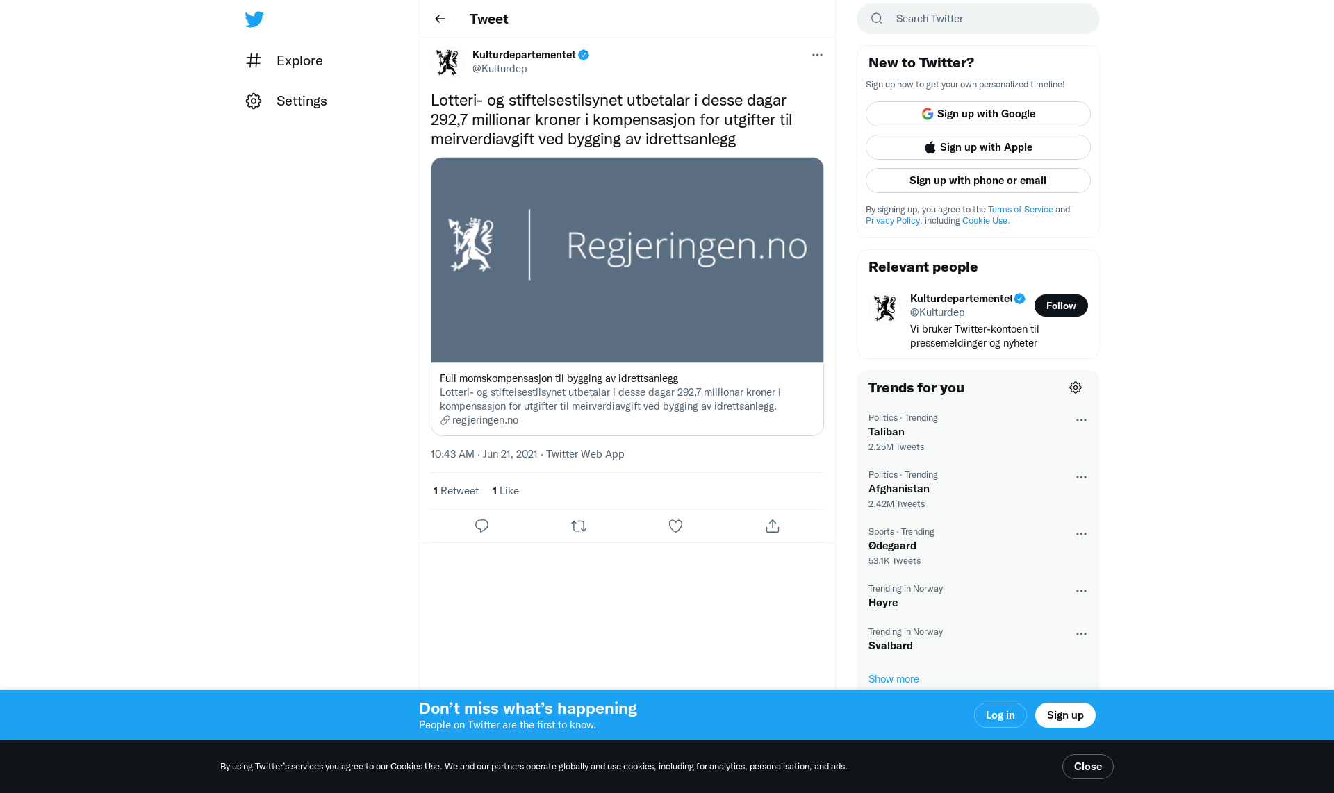 Lotteri- og stiftelsestilsynet utbetalar i desse dagar 292,7 millionar kroner i kompensasjon for utgifter til meirverdiavgift ved bygging av idrettsanlegg