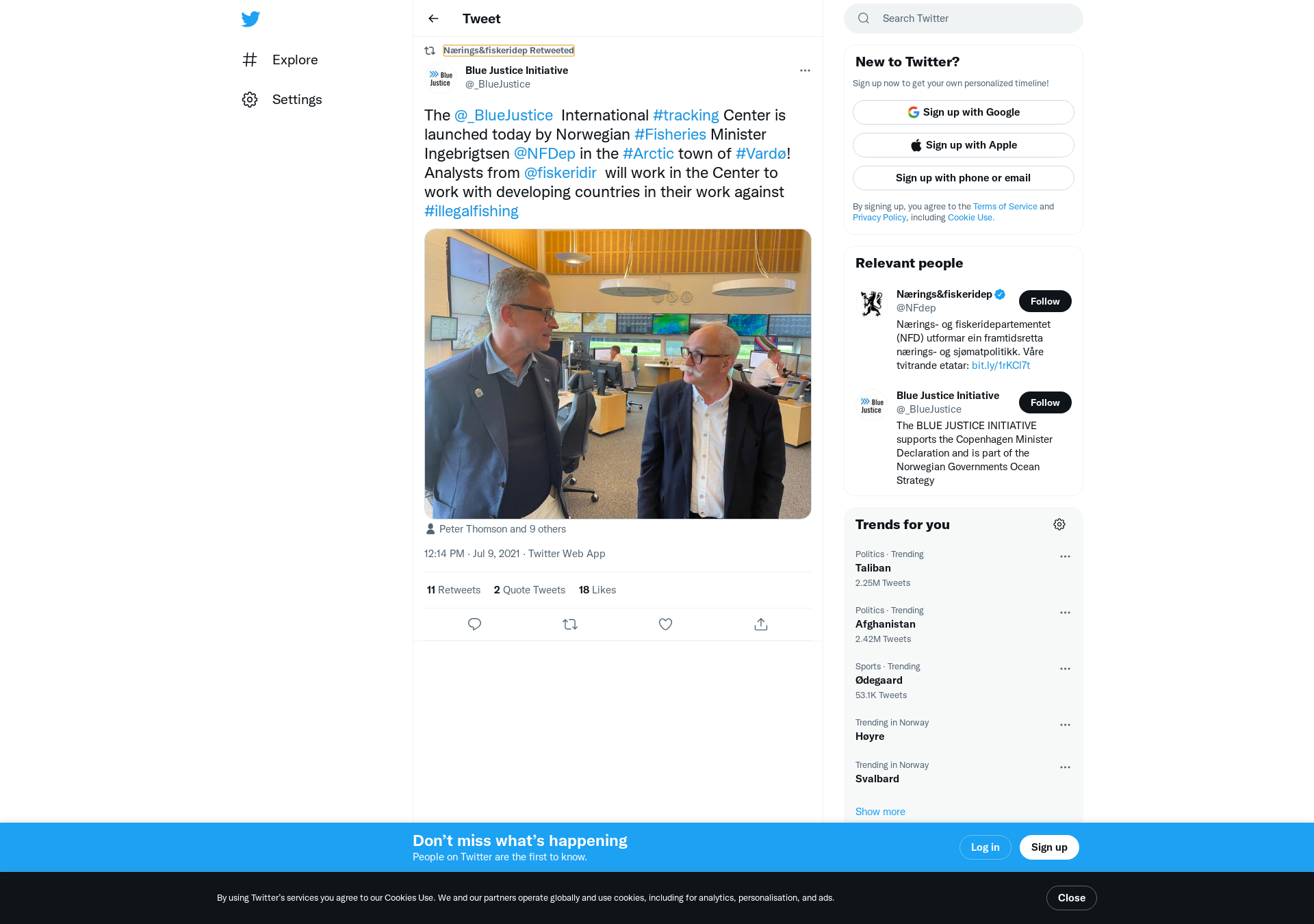RT @_BlueJustice: The @_BlueJustice International #tracking Center is launched today by Norwegian #Fisheries Minister Ingebrigtsen @NFDep in the #Arctic town of #Vardø! Analysts from @fiskeridir will work in the Center to work with developing countries in their work against #illegalfishing https://t.co/jdX9OmxXnC