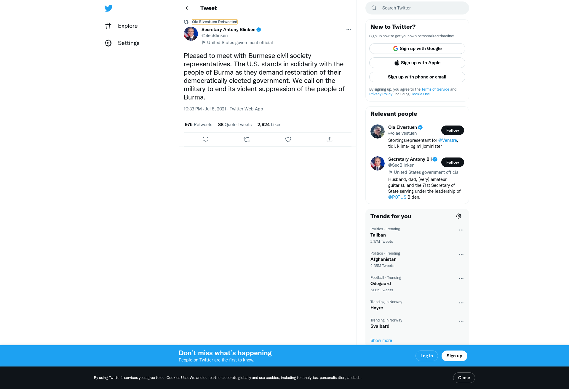 RT @SecBlinken: Pleased to meet with Burmese civil society representatives. The U.S. stands in solidarity with the people of Burma as they demand restoration of their democratically elected government. We call on the military to end its violent suppression of the people of Burma.