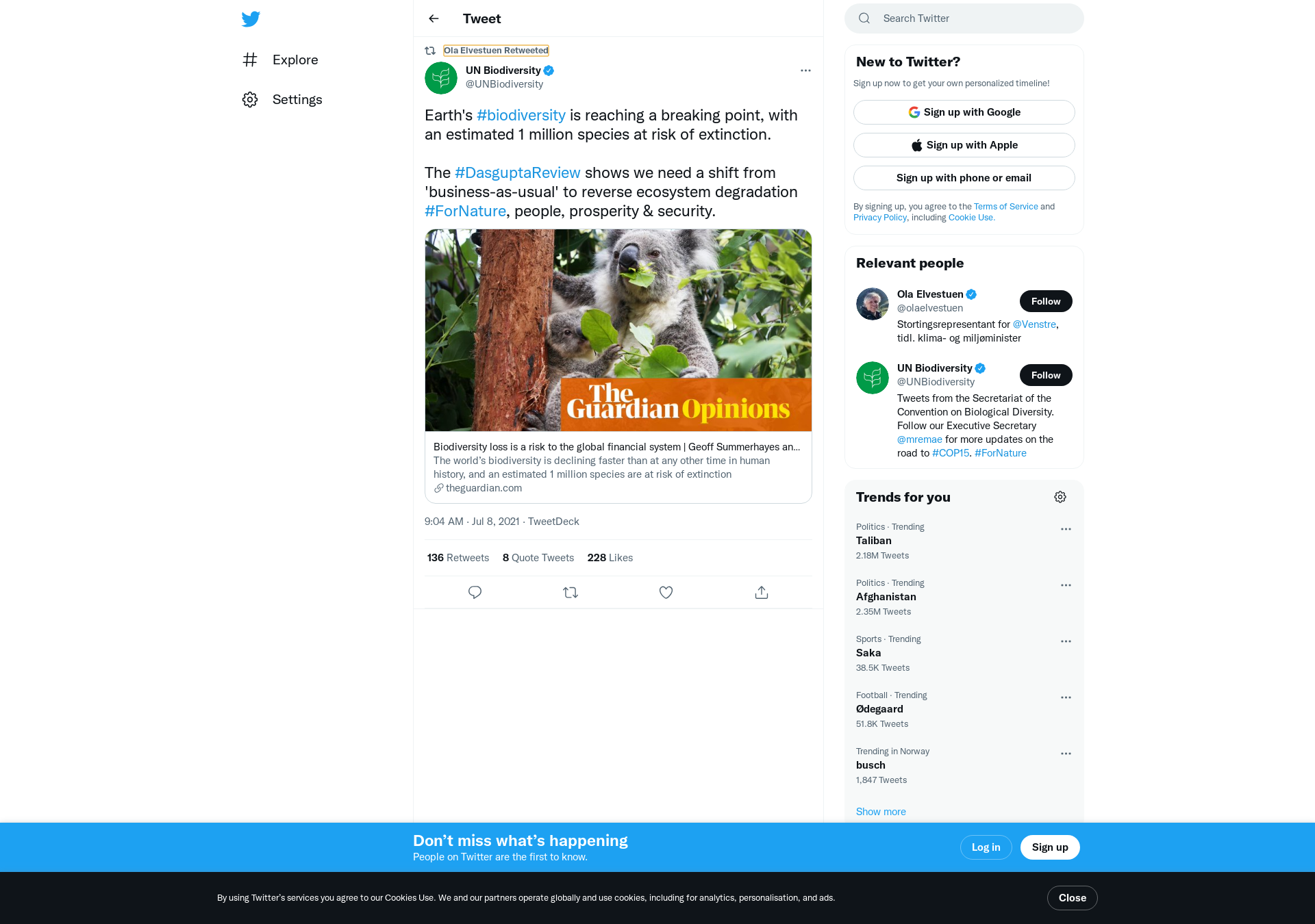 RT @UNBiodiversity: Earth's #biodiversity is reaching a breaking point, with an estimated 1 million species at risk of extinction. The #Da…