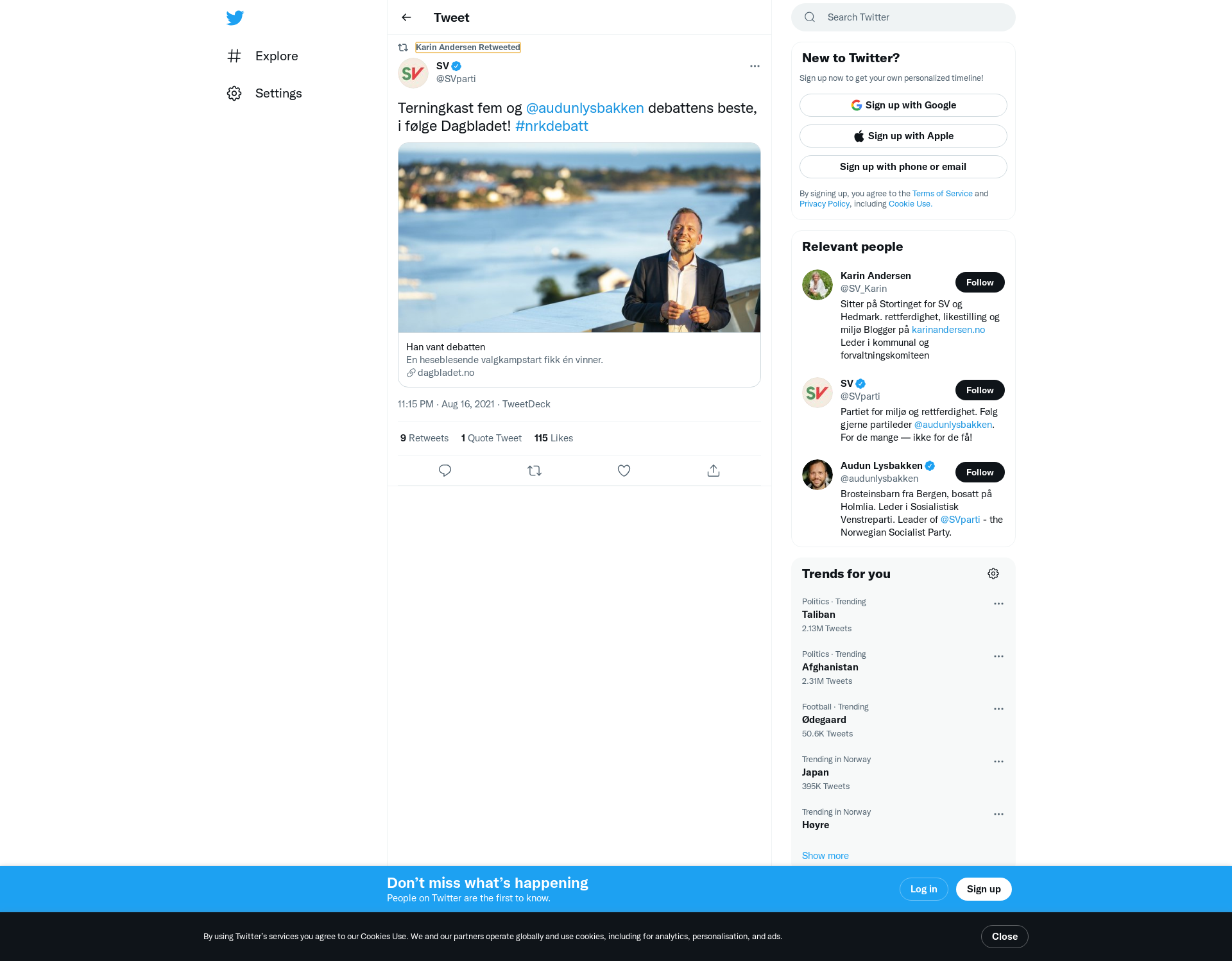 RT @SVparti: Terningkast fem og @audunlysbakken debattens beste, i følge Dagbladet! #nrkdebatt https://t.co/JfUSCZrtYA