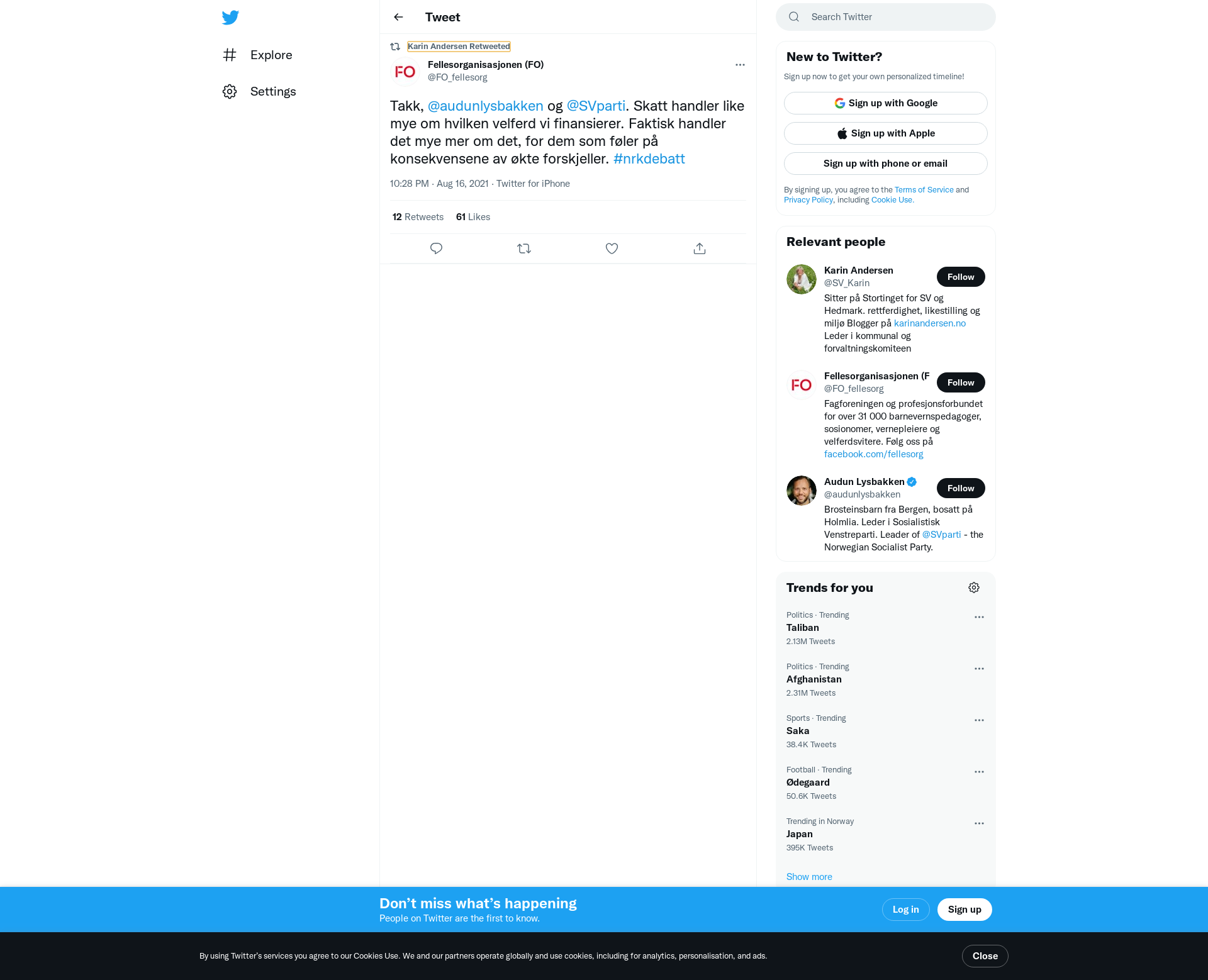RT @FO_fellesorg: Takk, @audunlysbakken og @SVparti. Skatt handler like mye om hvilken velferd vi finansierer. Faktisk handler det mye mer om det, for dem som føler på konsekvensene av økte forskjeller. #nrkdebatt