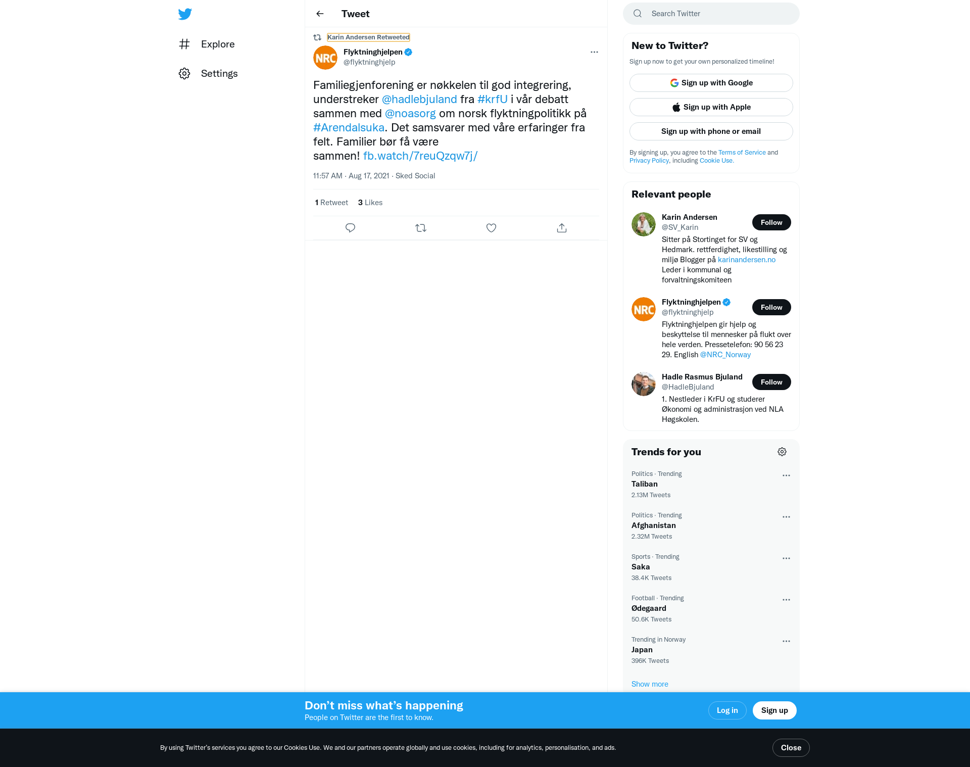 RT @flyktninghjelp: Familiegjenforening er nøkkelen til god integrering, understreker @hadlebjuland fra #krfU i vår debatt sammen med @noasorg om norsk flyktningpolitikk på #Arendalsuka. Det samsvarer med våre erfaringer fra felt. Familier bør få være sammen! https://t.co/wGIUv3pXJs