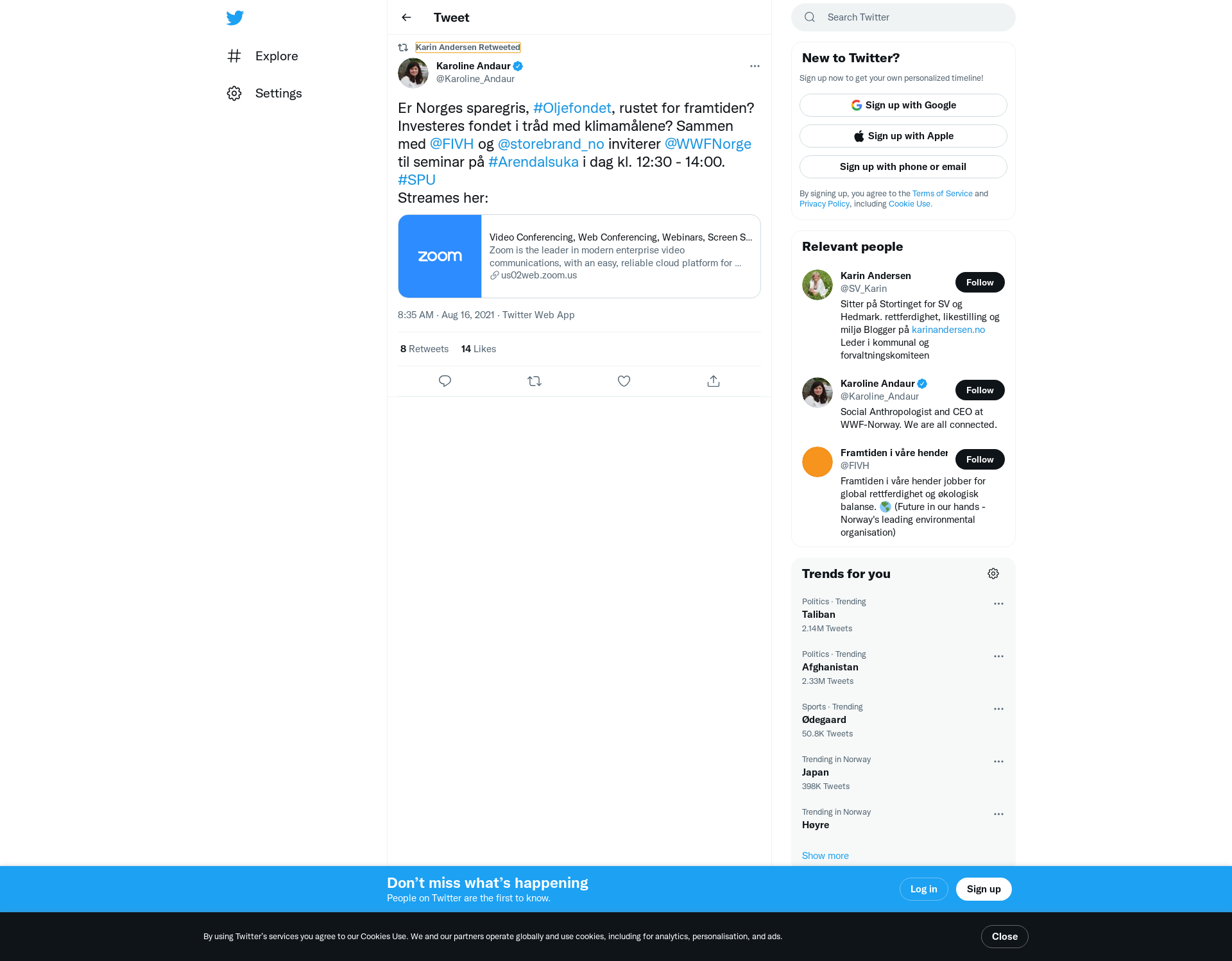 RT @Karoline_Andaur: Er Norges sparegris, #Oljefondet, rustet for framtiden? Investeres fondet i tråd med klimamålene? Sammen med @FIVH og @storebrand_no inviterer @WWFNorge til seminar på #Arendalsuka i dag kl. 12:30 - 14:00. #SPU