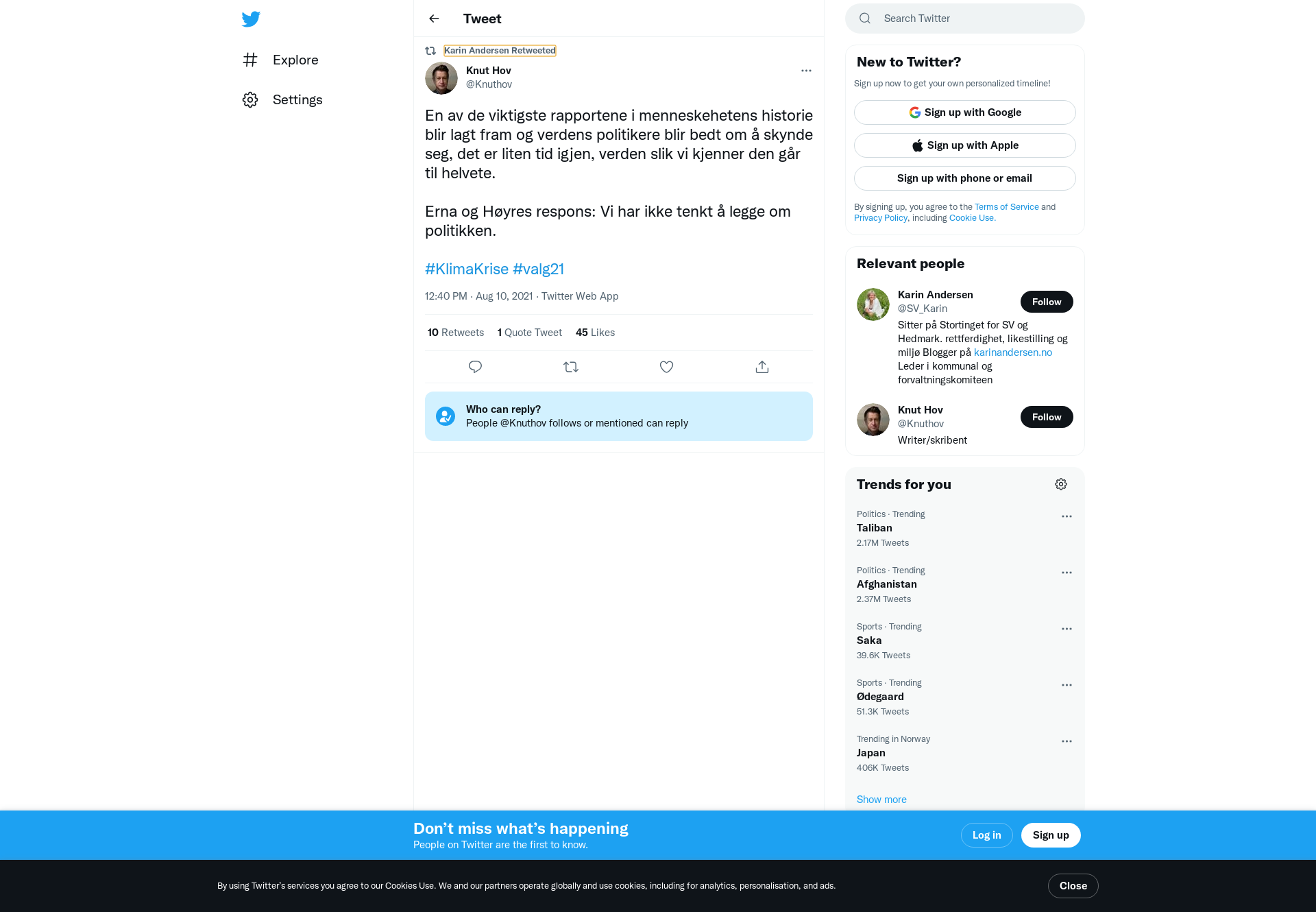 RT @Knuthov: En av de viktigste rapportene i menneskehetens historie blir lagt fram og verdens politikere blir bedt om å skynde seg, det er liten tid igjen, verden slik vi kjenner den går til helvete.