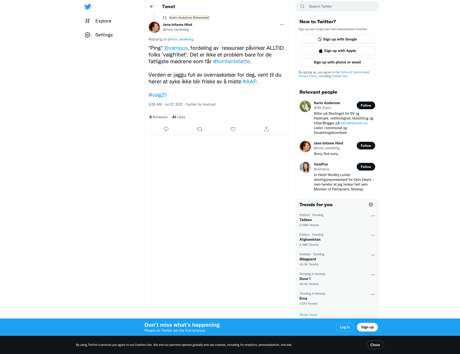 RT @hvor_vanskelig: *Ping* @vampus, fordeling av ressurser påvirker ALLTID folks 'valgfrihet'. Det er ikke et problem bare for de fattigste mødrene som får #kontantstøtte.