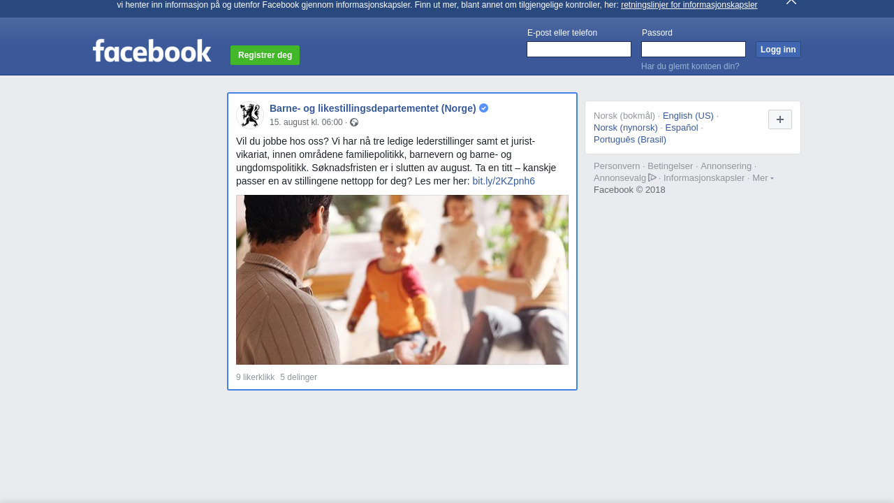 Vil du jobbe hos oss? Vi har nå tre ledige lederstillinger samt et jurist-vikariat, innen områdene familiepolitikk, barnevern og barne- og ungdomspolitikk. Søknadsfristen er i slutten av august. Ta en titt – kanskje passer en av stillingene nettopp for deg? Les mer her: bit.ly/2KZpnh6