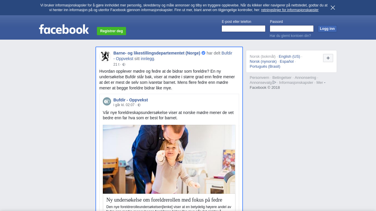 Hvordan opplever mødre og fedre at de bidrar som foreldre? En ny undersøkelse Bufdir står bak, viser at mødre i større grad enn fedre mener at det er mest de selv som ivaretar barnet. Mens flere fedre enn mødre mener at begge foreldre bidrar like mye.