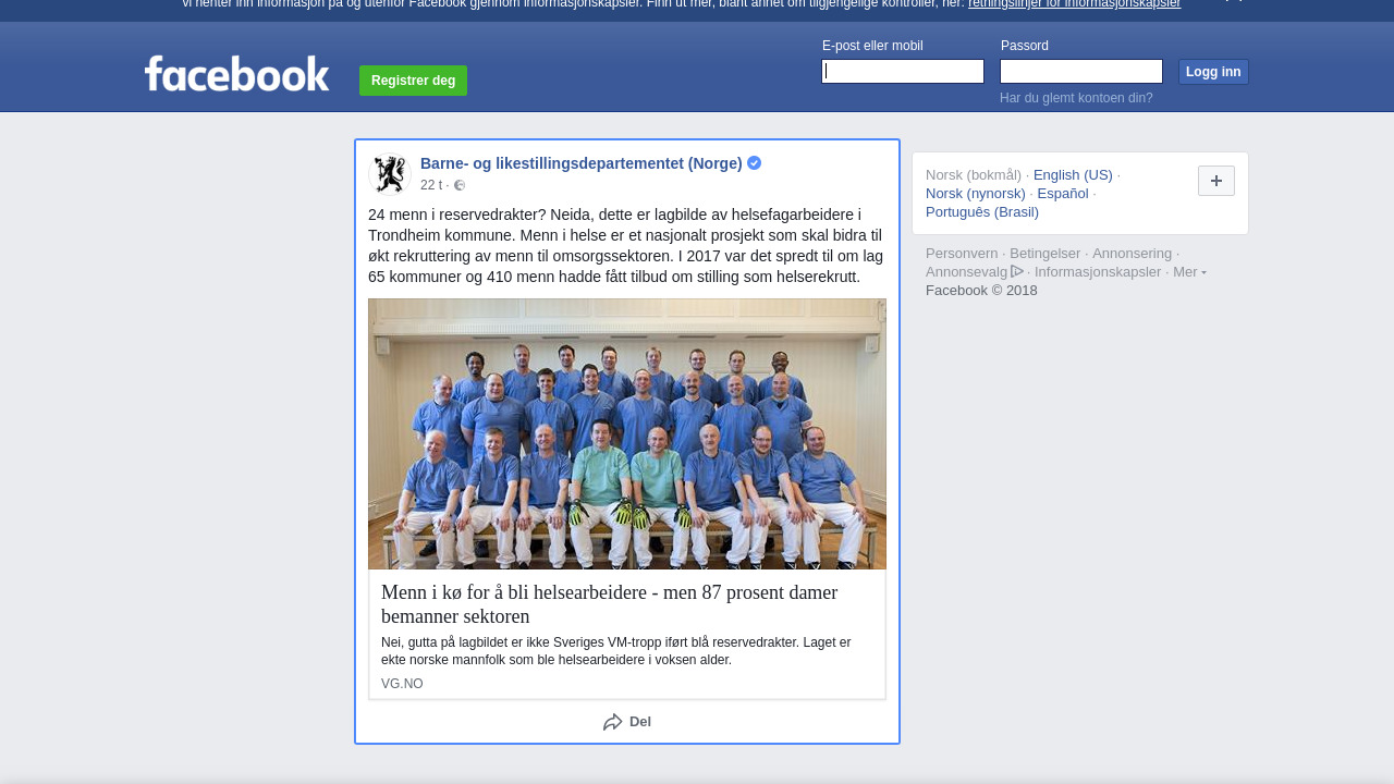 24 menn i reservedrakter? Neida, dette er lagbilde av helsefagarbeidere i Trondheim kommune. Menn i helse er et nasjonalt prosjekt som skal bidra til økt rekruttering av menn til omsorgssektoren. I 2017 var det spredt til om lag 65 kommuner og 410 menn hadde fått tilbud om stilling som helserekrutt.