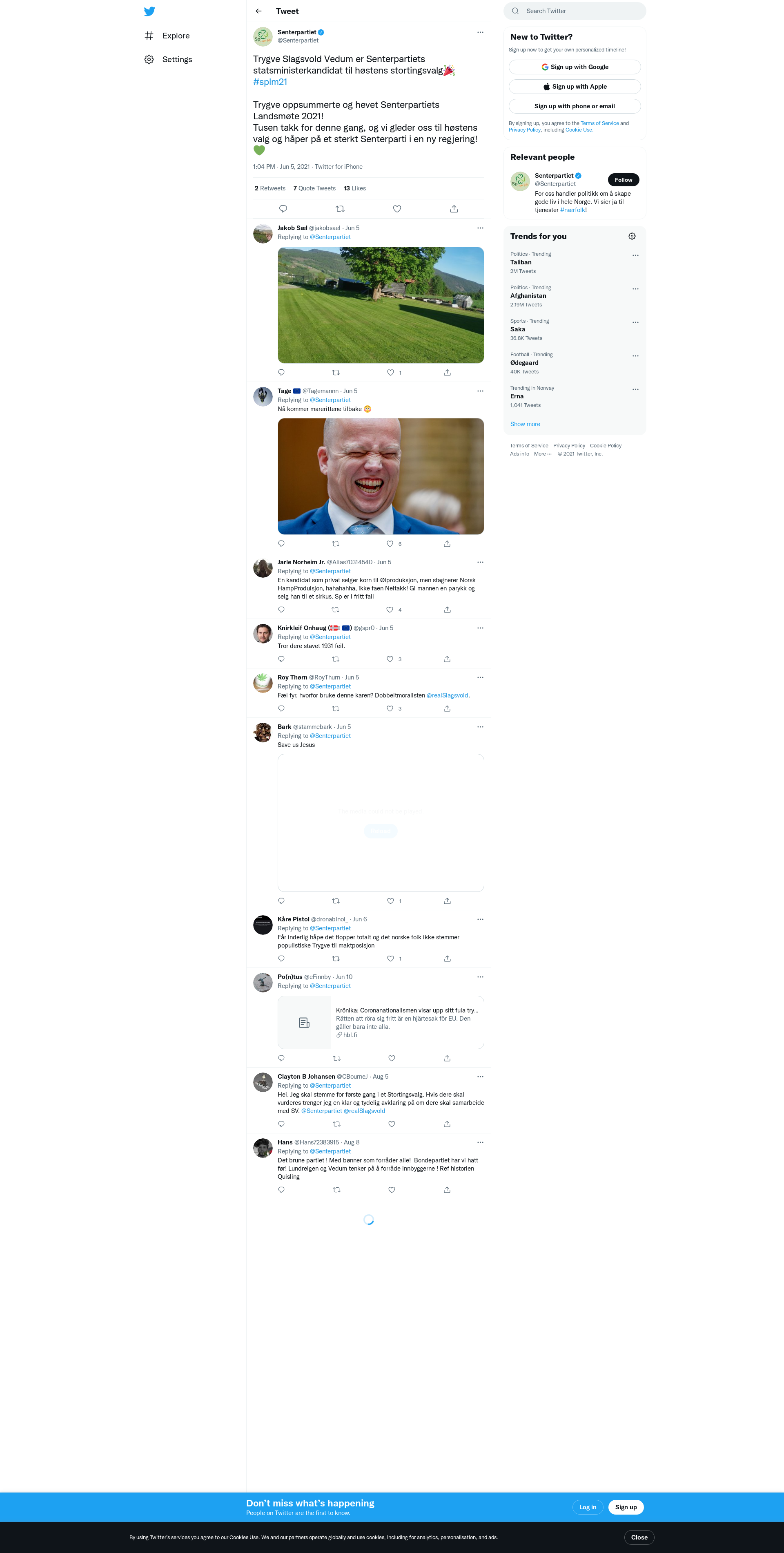 Trygve Slagsvold Vedum er Senterpartiets statsministerkandidat til høstens stortingsvalg🎉 #splm21