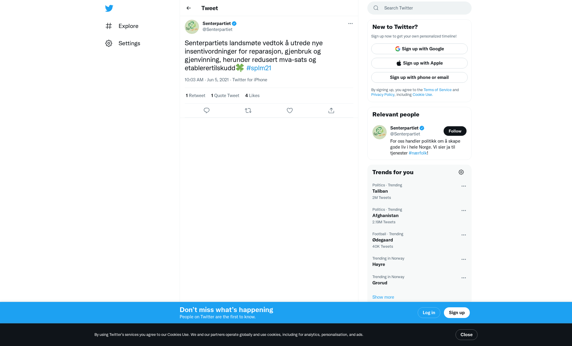 Senterpartiets landsmøte vedtok å utrede nye insentivordninger for reparasjon, gjenbruk og gjenvinning, herunder redusert mva-sats og etablerertilskudd🍀 #splm21