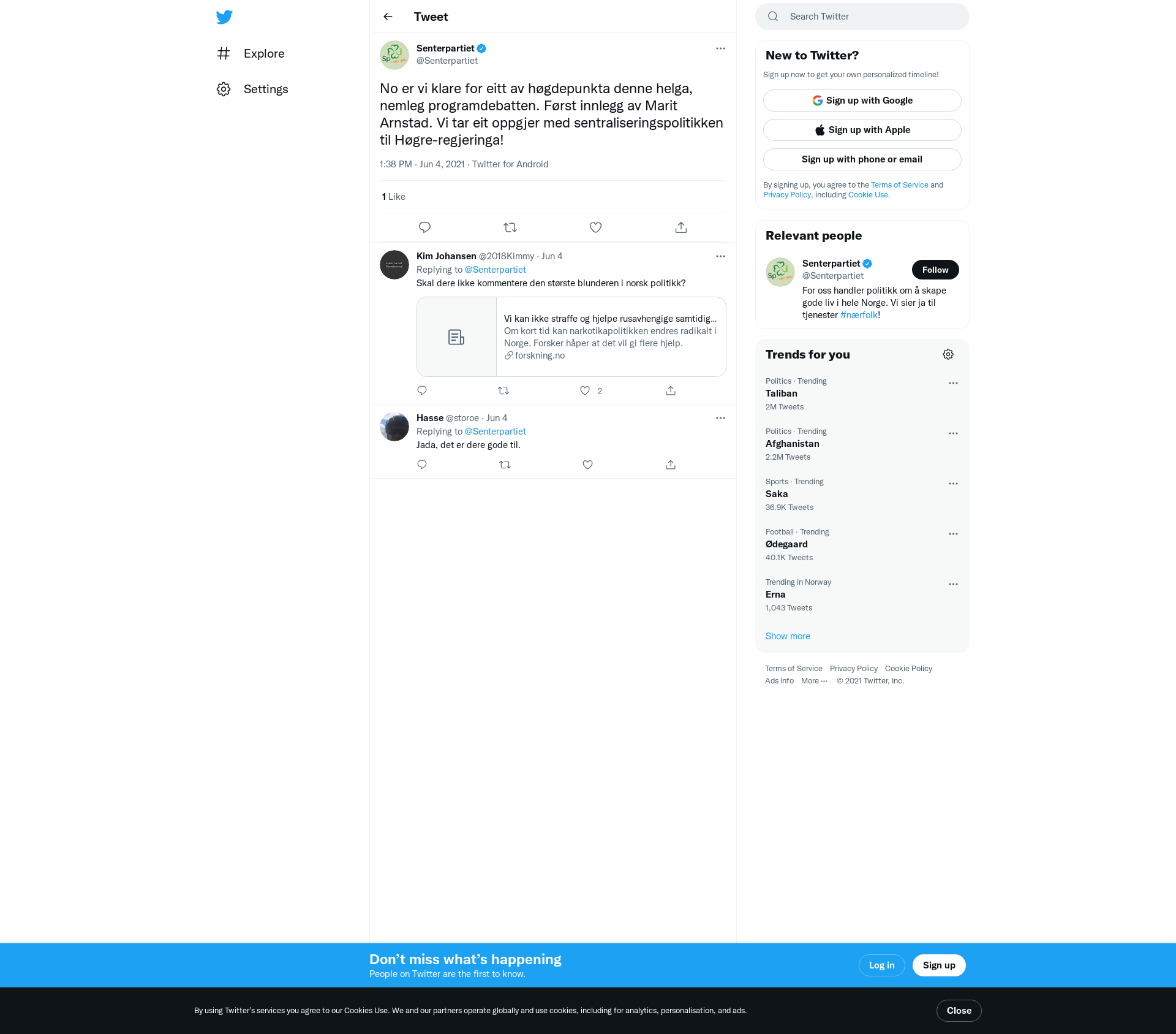 Senterpartiet på Twitter