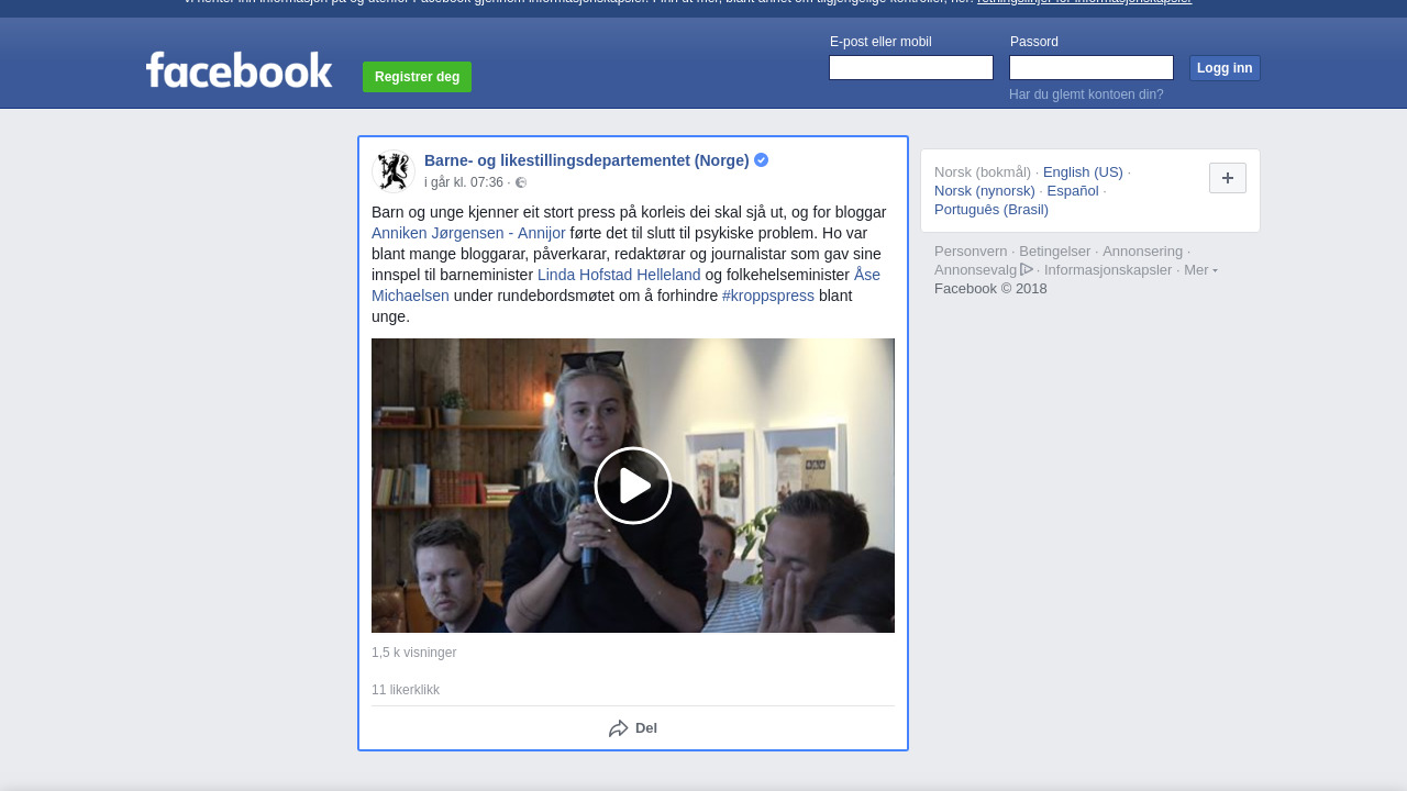 Barn og unge kjenner eit stort press på korleis dei skal sjå ut, og for bloggar Anniken Jørgensen - Annijor førte det til slutt til psykiske problem. Ho var blant mange bloggarar, påverkarar, redaktørar og journalistar som gav sine innspel til barneminister Linda Hofstad Helleland og folkehelseminister Åse Michaelsen under rundebordsmøtet om å forhindre #kroppspress blant unge.