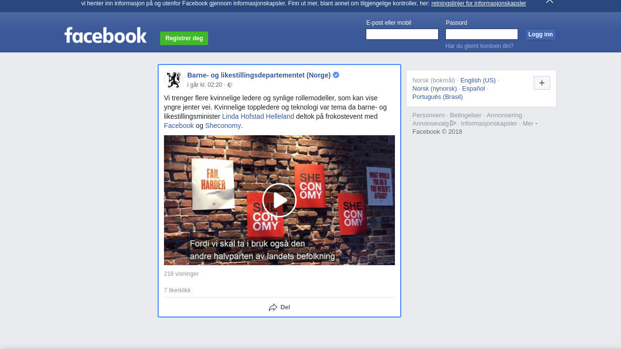 Vi trenger flere kvinnelige ledere og synlige rollemodeller, som kan vise yngre jenter vei. Kvinnelige toppledere og teknologi var tema da barne- og likestillingsminister Linda Hofstad Helleland deltok på frokostevent med Facebook og Sheconomy.