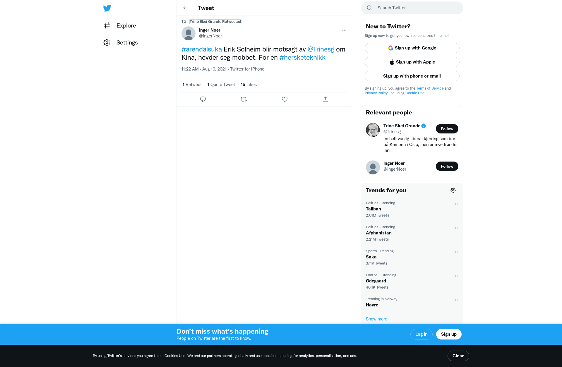 RT @IngerNoer: #arendalsuka Erik Solheim blir motsagt av @Trinesg om Kina, hevder seg mobbet. For en #hersketeknikk
