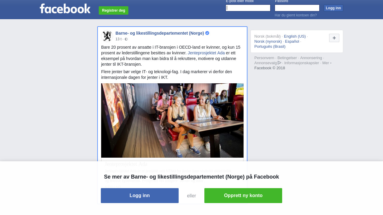 Bare 20 prosent av ansatte i IT-bransjen i OECD-land er kvinner, og kun 15 prosent av lederstillingene besittes av kvinner. Jenteprosjektet Ada er ett eksempel på hvordan man kan bidra til å rekruttere, motivere og utdanne jenter til IKT-bransjen.