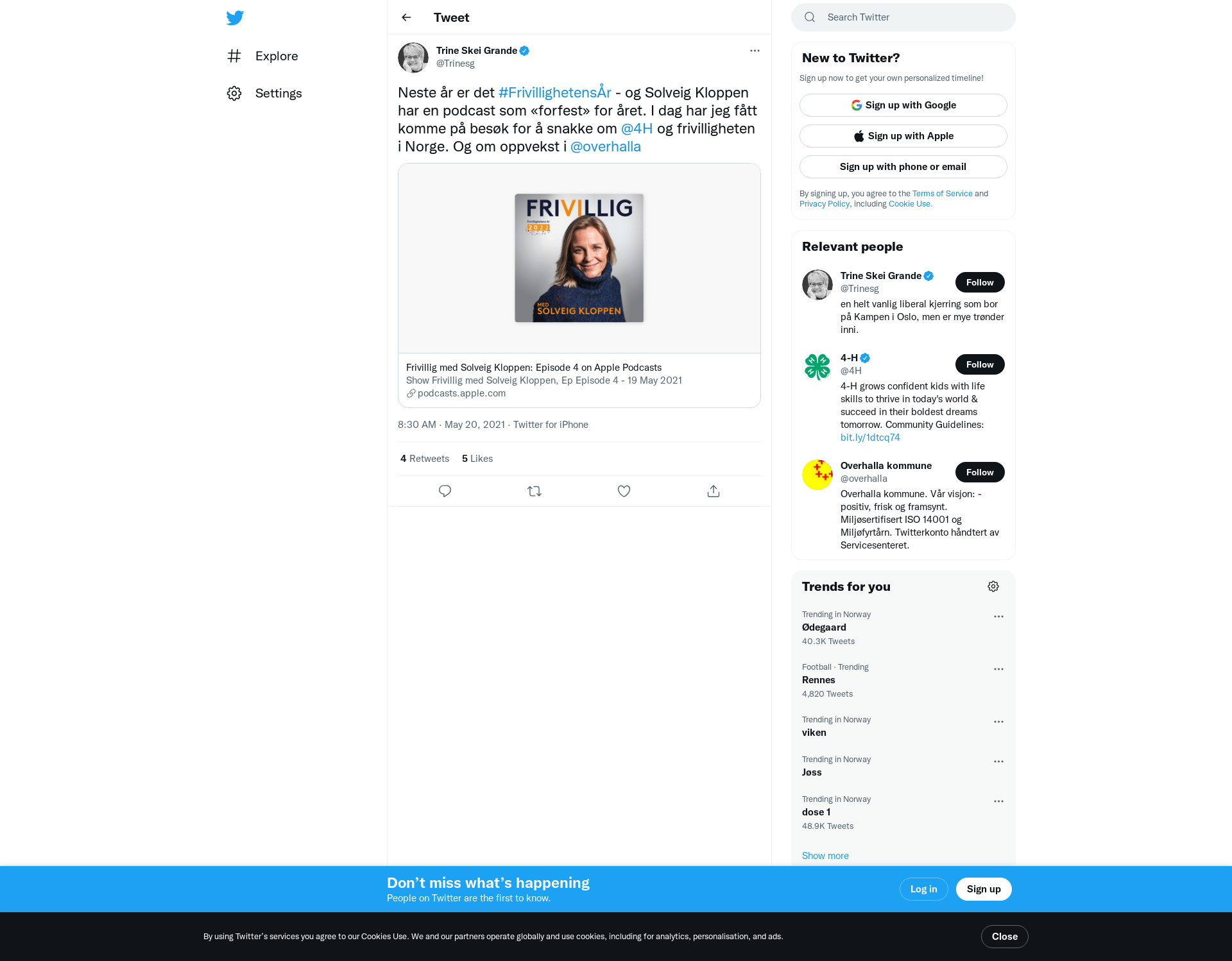 Neste år er det #FrivillighetensÅr - og Solveig Kloppen har en podcast som «forfest» for året. I dag har jeg fått komme på besøk for å snakke om @4H og frivilligheten i Norge. Og om oppvekst i @overhalla https://t.co/mtTrW5dgCy