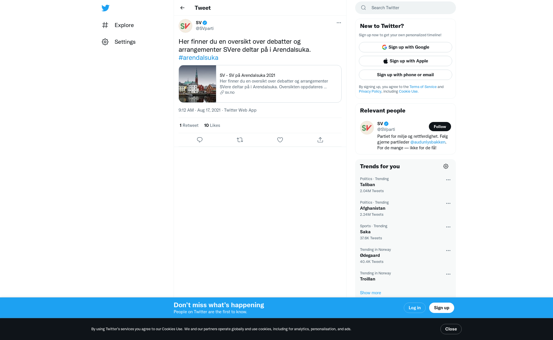 Her finner du en oversikt over debatter og arrangementer SVere deltar på i Arendalsuka. #arendalsuka https://t.co/79IY7rWxw3