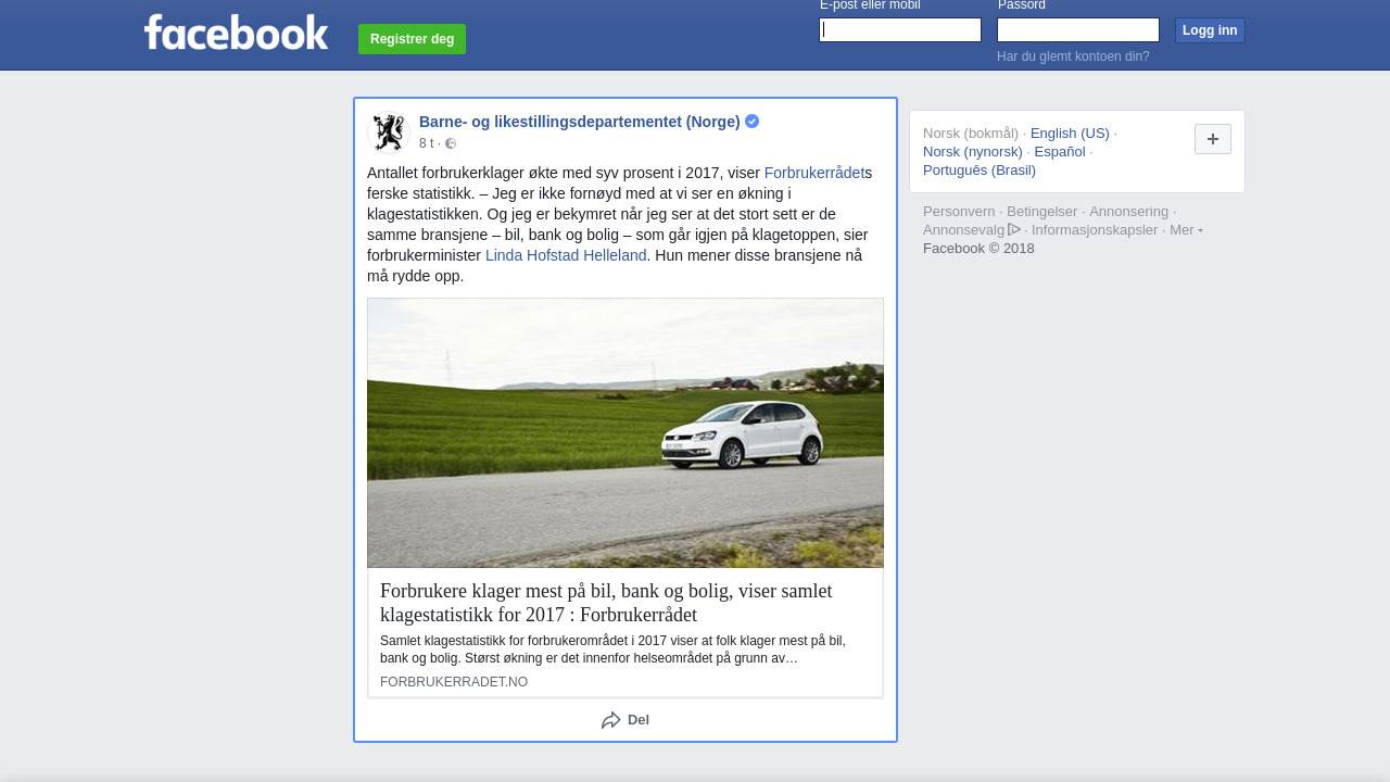 Antallet forbrukerklager økte med syv prosent i 2017, viser Forbrukerrådets ferske statistikk. – Jeg er ikke fornøyd med at vi ser en økning i klagestatistikken. Og jeg er bekymret når jeg ser at det stort sett er de samme bransjene – bil, bank og bolig – som går igjen på klagetoppen, sier forbrukerminister Linda Hofstad Helleland. Hun mener disse bransjene nå må rydde opp.