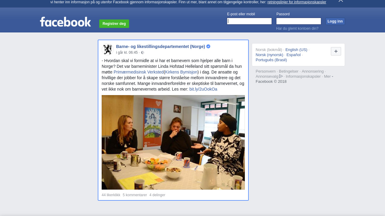 - Hvordan skal vi formidle at vi har et barnevern som hjelper alle barn i Norge? Det var barneminister Linda Hofstad Helleland sitt spørsmål da hun møtte Primærmedisinsk Verksted(Kirkens Bymisjon) i dag. De ansatte og frivillige der jobber for å skape større forståelse mellom innvandrere og det norske samfunnet. Mange innvandrerforeldre er skeptiske til barnevernet, og vet ikke nok om barnevernets arbeid. Les mer: bit.ly/2uOokOa