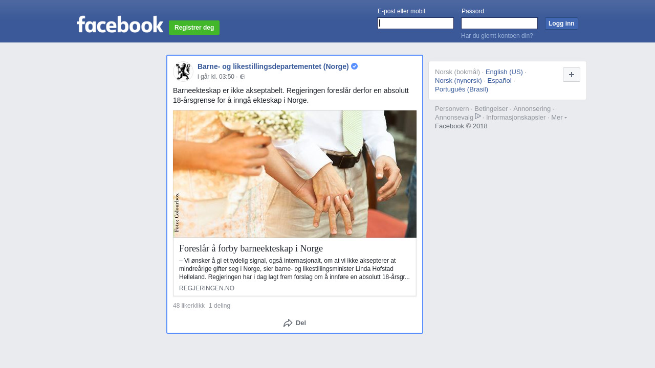 Foreslår å forby barneekteskap i Norge