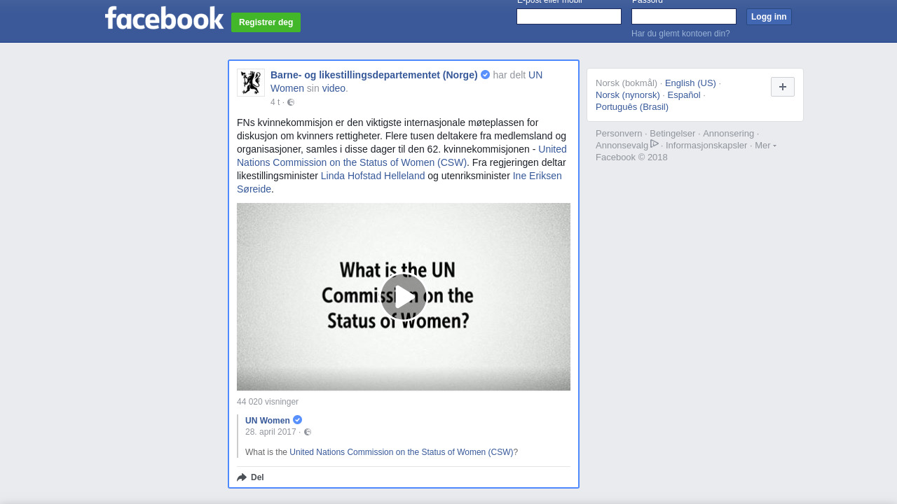 FNs kvinnekommisjon er den viktigste internasjonale møteplassen for diskusjon om kvinners rettigheter. Flere tusen deltakere fra medlemsland og organisasjoner, samles i disse dager til den 62. kvinnekommisjonen - United Nations Commission on the Status of Women (CSW). Fra regjeringen deltar likestillingsminister Linda Hofstad Helleland og utenriksminister Ine Eriksen Søreide.
