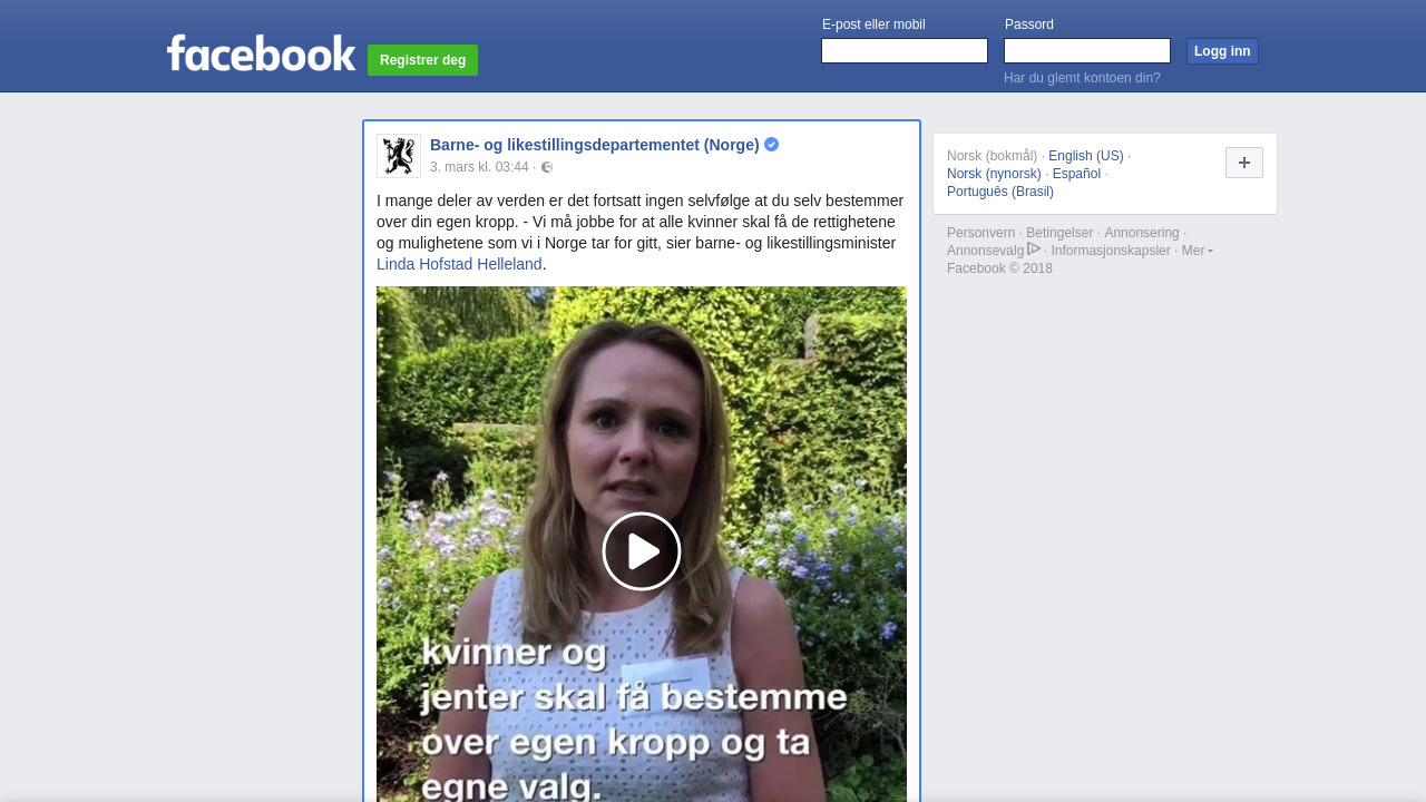 I mange deler av verden er det fortsatt ingen selvfølge at du selv bestemmer over din egen kropp. - Vi må jobbe for at alle kvinner skal få de rettighetene og mulighetene som vi i Norge tar for gitt, sier barne- og likestillingsminister Linda Hofstad Helleland.