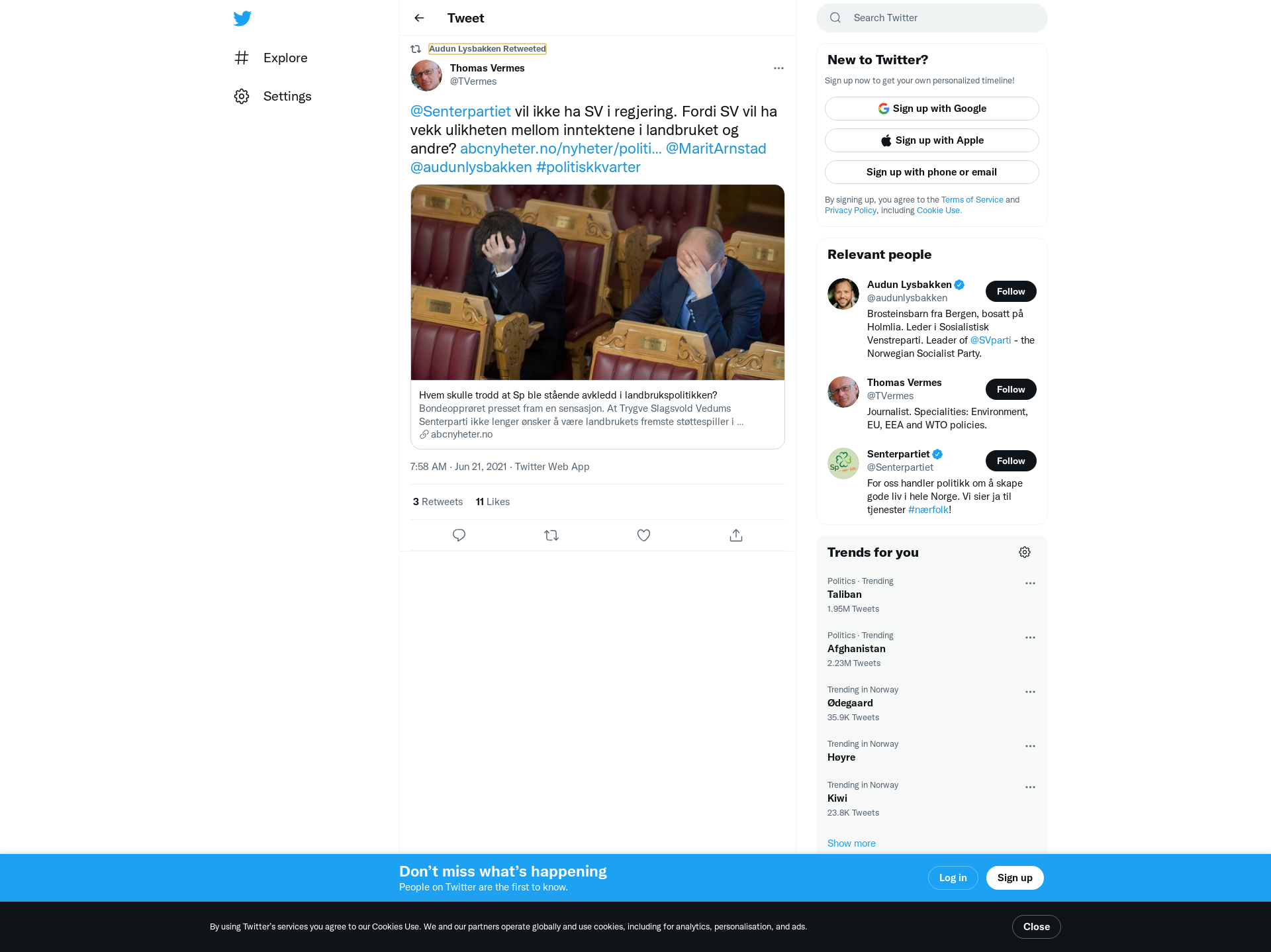 RT @TVermes: @Senterpartiet vil ikke ha SV i regjering. Fordi SV vil ha vekk ulikheten mellom inntektene i landbruket og andre? https://t.co/Z1OsW59r61 @MaritArnstad @audunlysbakken #politiskkvarter